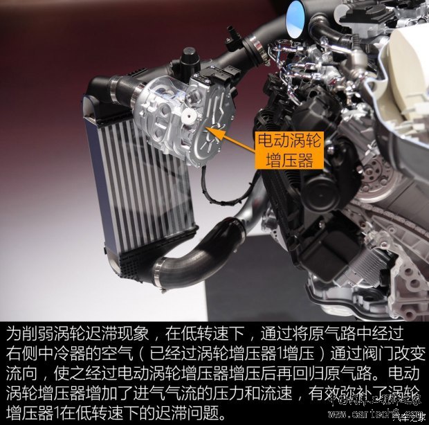 霍尼韦尔给大众供应的可变截面涡轮增压器 另一个增压器黑科技则是电动涡轮增压器,霍尼韦尔相信使用电动启动器以后燃油经济性还可以继续提升15%。同时霍尼韦尔还希望介入到软件控制层面,把控制代码嵌入到增压器这个部件上,这样标定厂商可以更好地开展工作,而增压器效率也可以进一步在电动涡轮的基础上进一步提升5%。 据霍尼韦尔表示,搭载电动涡轮增压器的车型将2017年上市,国内应该是在2018年推出——如果没有猜错的话,首款搭载电动涡轮的车型应该是奥迪SQ7,4.0TDI发动机可以在1000转的时候输出900N?m最大扭矩。