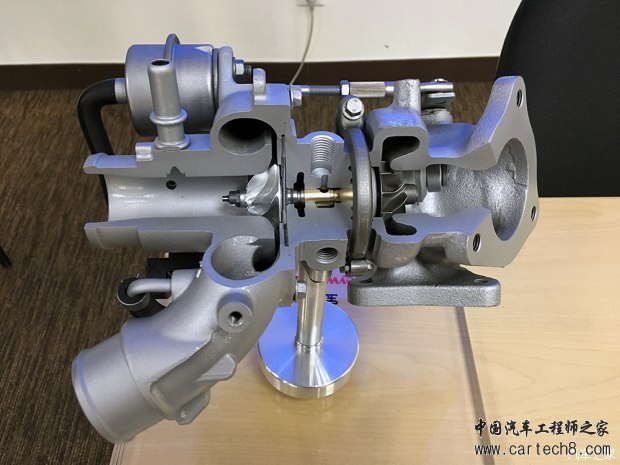 球轴承部件 由于霍尼韦尔在航空领域上的研发能力,在轴承技术上相当超强,包括在直升机螺旋桨引擎上的球轴承技术就用在了今年刚刚回归勒芒赛的福特GT上,霍尼韦尔给福特定制了一套用在3.6L双涡轮增压器EcoBoostV6发动机的增压器,使用的就是轻质球轴承技术。当然,对于民用车来说,涡轮轴目前还是传统的浮动轴承占主导,只是霍尼韦尔在宝骏1.5T上的增压器中采用了半浮动轴承技术,最高可以达到21万转,这个数值要比很多配套厂商的十五六万转高出不少。此外,据霍尼韦尔透露,将来在宝骏上搭载的新一代产品将采用更小更细的轴承来进一步提升增压器的效率。 此外,涡轮增压器的另一个技术难点在于材料技术。“众所周知,航空对于材料科技的要求很高,比如飞机引擎的温度动辄高达一两千度,这需要足够先进的材料才能实现。虽然汽车涡轮增压器的温度需求比飞机低,但是900度左右的持续高温工作还是对涡轮材料要求很高。”霍尼韦尔工程师说,同样以宝骏1.5T上面搭载的涡轮增压器为例,其涡轮的材料是高镍合金,涡壳的材料是高镍铸铁,这些材料技术早期,都是源于霍尼韦尔的航空研发部门。 涡轮增压器是怎么匹配到发动机上的? “这次宝骏1.5T发动机搭载的是霍尼韦尔最新的第二代汽油涡轮增压器,能够实现1000转时涡轮介入、1750转即可输出220N?m的最大扭力。”霍尼韦尔方面的研发人员很简短的介绍了新机型的技术特性。 听到这里,驾仕派发现,宝骏1.5T涡轮的介入转速、最大输出转速和PSA 1.2THP那个几乎一样。的确,据霍尼韦尔透露,宝骏1.5T发动机上使用的这个增压器跟PSA 1.2THP上的属于同一个平台,但是因为进排气管路接口不一样,所以壳体设计上有区别,菲亚特1.4也是同样的平台。 实际上,涡轮增压发动机的研发流程一般是在发动机的本体开发起初,增压器厂商就要进行介入,然后和标定企业一起进行大量的试验验证。对于霍尼韦尔的涡轮增压器部门来说,他们在上海有一个全球第二大的研发中心,包括23个试验台架——7个耐久台架、6个性能台架、6个发动机测试台架,和4个特殊测试台架。这些试验台架可以为车企提供足够详细的测试数据,包括单机涡轮增压器的耐久性测试、高温试验、配套到发动机上后的耐久试验等等。“比如通过大量的试验验证,宝骏B15T的涡轮增压器通过了在通用标准基础上,单机进行了超过50万公里的涡轮增压强化试验。”