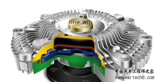 由谁来控制风扇转与不转? 司机肯定是没闲工夫来管这个,所以只能全权交给发动机自己来处理。由于缺乏先进的电气技术,早期的发动机热能管理技术比较粗狂,风扇的动力来源于发动机本身,而对风扇转速调节控制则是交给一个叫硅油离合器的部件来实现的。