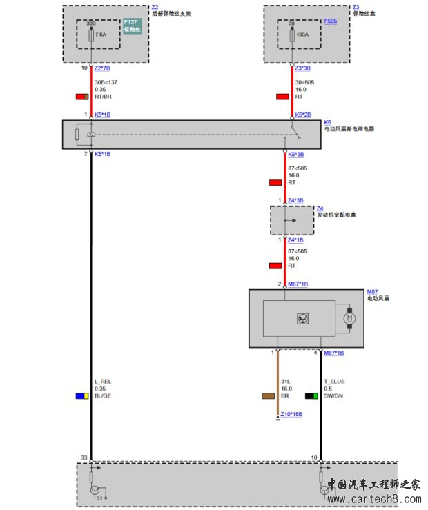 更加智能的风扇 不过如果你开的不是几十年前的宝马,那么上面的那个飙车案例显然是个伪命题,因为现在760的发动机热能管理系统不会那么傻,在各类传感器、模块、电气技术高度发达的当下,风扇的控制显得主动了很多,它会在感知到你需要燃油经济性的时候少发力,会在你刚打算暴力驾驶的第一时间就全负荷给发动机降温。并且智能远不止这些,还有更多我们作为驾驶者考虑不到的一些决策,全都可以由汽车自己完成。 让我们来看看宝马760的风扇系统电路图