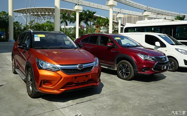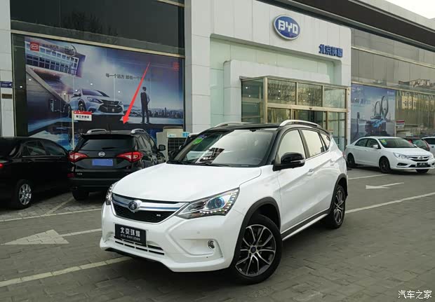 宋EV300两驱版的整车尺寸、轴距、外观覆盖件、内饰设定,几乎沿袭了燃油版宋的设定(除动力总成和大部分前后悬架分系统外,所有备件几乎可以互换)。宋EV300长宽高为4565x1870x1720mm,轴距2660mm。 红色箭头:已经上了正式牌照的燃油版宋