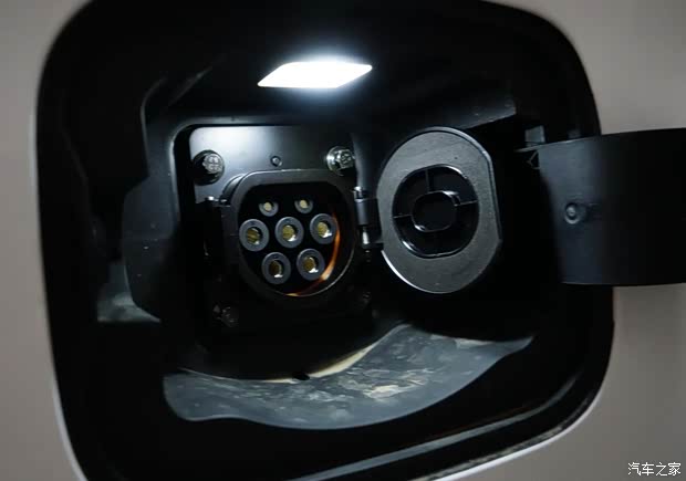 宋EV300两驱版商品车快充接口位于后侧围左端,慢充接口位于后侧围右端。 慢充口开启后,照明灯会自动开启。