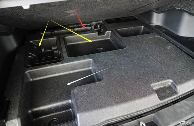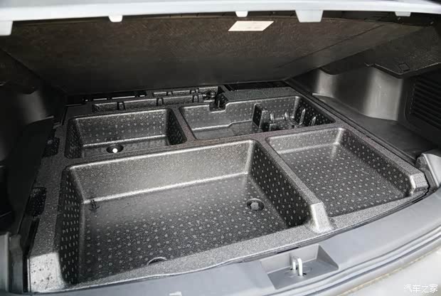 上图为宋EV300电四驱版工程测试样车后备箱储物格状态特写,较量产车的储物功能设定略有不同。