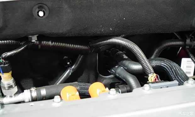 上图为使用热缩管全防护的前围线束细节特写。笔者注意到,在动力舱内视场可观察到的线缆,全部被严密包裹,或使用支架固定出预制弯位,或额外包裹一层绝缘材料。