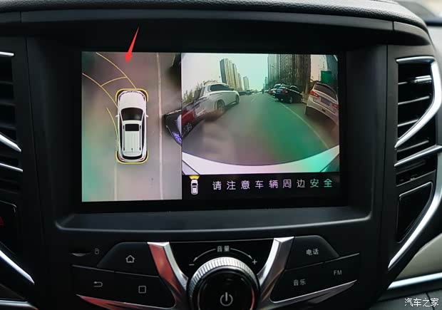 显示质量提升后的360度行车辅助影像系统,具备倒车以及前进行驶的轨迹线路提示。笔者操作方向盘角度的不断变化,辅助轨迹路线也会“1:1”的进行调整。