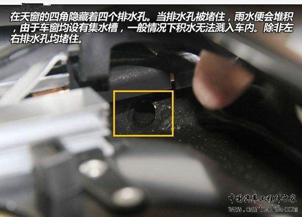 当密封橡胶条老化之后,会有很多漏水的地方。所以,当车子出现了漏水,多数情况不是什么零部件坏了,一般是排水孔堵塞造成的。那么车上都有哪些排水孔呢? 1.天窗排水口