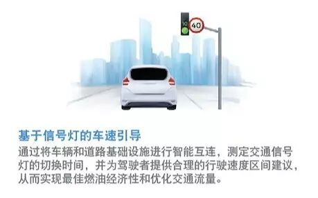 车辆与基础设施间的互联技术:减少路遇红灯的几率,提高通行效率和合理性。