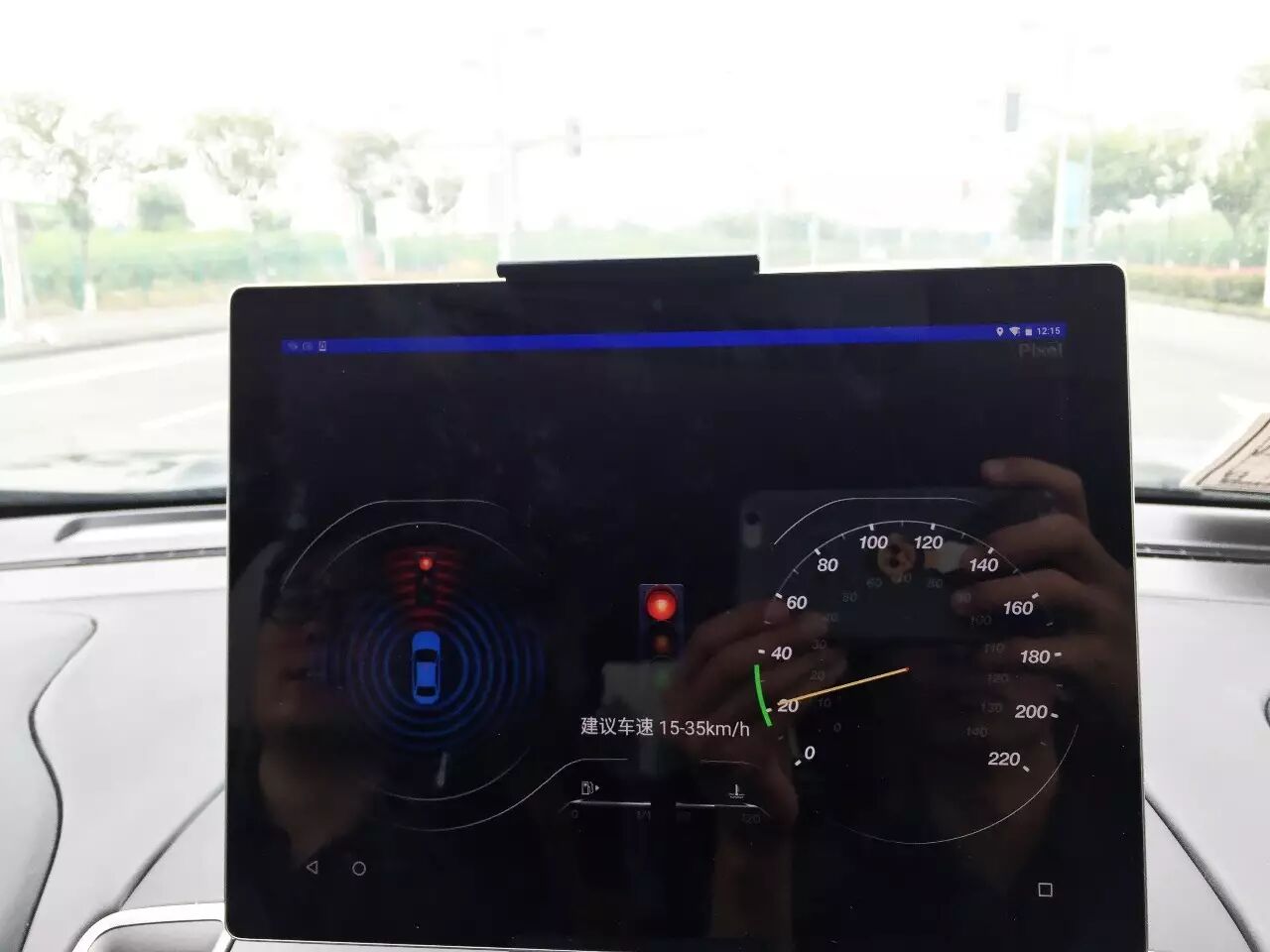实际测试过程中,一辆改装后的福特翼虎的中控台单独放置了一台平板电脑,车辆在与路口红绿灯实现通信之后,会将信号灯的实时状态以及相应的建议行驶时速显示在屏幕上,而根据驾驶者随后采取的行动,这项建议也会做出动态的调整。