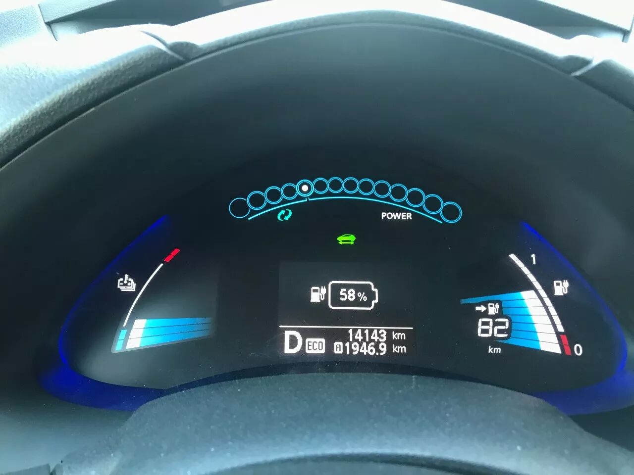 在ECO(节能)模式下,剩余可续航里程82公里,约占53%,这是编辑在拿到车时的初始电量,因此我们可以倒推一下,不是最准确的续航里程但可以用作参考,总续航约为141公里。如果按照正常模式行驶,续航里程会更短,而4S店给出的标准续航里程为175公里,当天北京地面温度为零上4度左右。