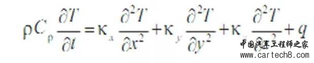 2、电池热场计算及温度预测 电池不是热的良导体,电池表面温度分布不能充分说明电池内部的热状态,通过数学模型计算电池内部的温度场,预测电池的热行为,对于设计电池组热管理系统是不可或缺的环节。通常使用如下公式进行计算: