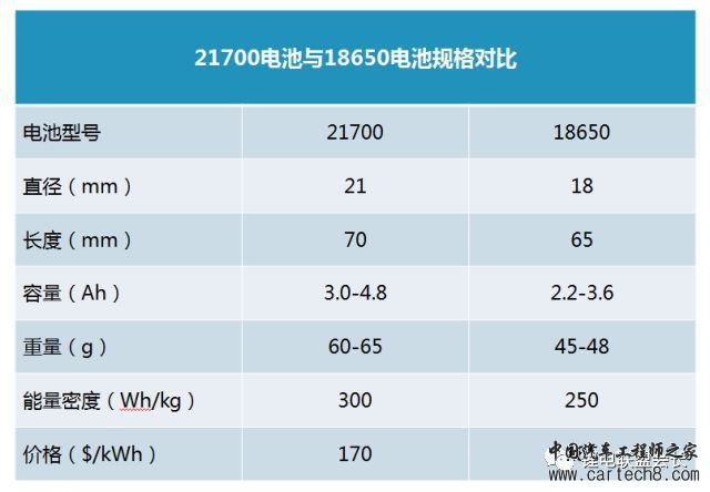 。。。。。 21700电池有何优势吸引国内车企? 我国有明确的要求,在2020年动力电池单体能量密度突破300Wh/kg,动力电池系统能量密度达到260Wh/kg;2025年动力电池系统能量密度要达到350Wh/kg。这些要求都促使电池企业不得不研发探索能量密度高的动力电池型号。