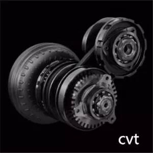 CVT英文直译为连续可变传动,因为没有挡位变化,所以又称无级变速箱。其结构非常简单,就是两个传动椎盘,一个输入一个输出,再加一个链条,高端一点儿的用钢带。通过控制传动链条(或钢带)在椎盘上的位置,以此来改变与椎盘接触时的直径,实现传动比的变化。所以,CVT里没有类似于MT或AT的齿轮组。
