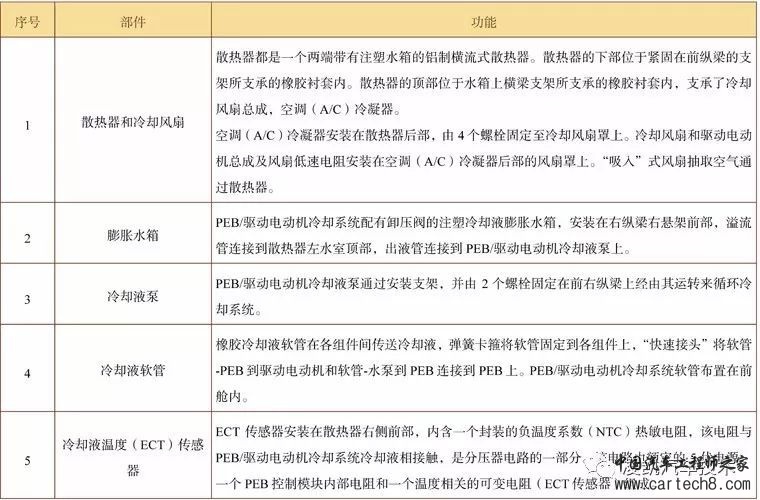 冷却系统部件组成和功能如下图所示。