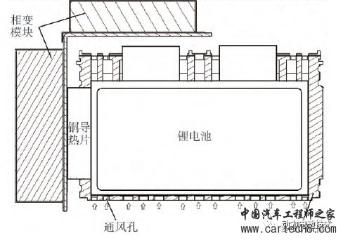 电芯工作时产生的热量通过导热硅胶垫片传递至液冷管,由冷却液热胀冷缩自由循环流动将热量带走,使整个电池包的温度均衡统一,冷却液强大的比热容吸收电芯工作时产生的热量,使整个电池包在安全温度内运作。导热硅胶良好的绝缘性能和高回弹韧性,能有效避免电芯之间的震动摩擦破损问题,和电芯之间的短路隐患,是水冷方案的最佳辅助材料。 此液冷方案采用S型导热铝管、在铝管上贴附异型导热硅胶带(在导热硅胶带与电芯接触面增加凸起条纹),让电芯与导热管之间接触面更大,导热效果和减震效果更好。 圆柱形电池的电池模组PCM散热结构,相变材料的应用,可以与液冷配合,也可以独立使用。独立应用则可以有多种排列方式。可以将PCM板材贴合在电池模组外部,辅助散热,如下图所示。据该实验结果显示,相变材料的存在也可以起到一定冷却作用。