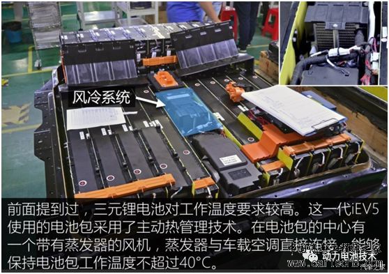 江淮iEV5,国内使用圆柱电池的车型不多,比较著名的应该算江淮iEV5,盗图来看一看。电池包总体32并92串,共2944颗电芯,合计23kWh电量。冷却方式为主动风冷。 电池包整体