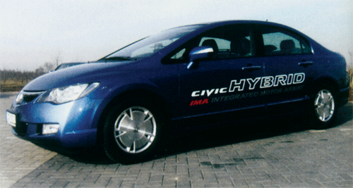 “智能化”的动力单元 当然,只有在配用了蓄电电瓶之后,整个混合动力驱动系统才能算是一个完整的系统。本田公司在Civic轿车的混合动力系统中安装了一个镍金属蓄电电瓶(Nickel-Metallhydrid-Speicher),电瓶的容量为6kWh。它由一块块蓄电板组成,每块蓄电板的电压为1.2V,每6块蓄电板构成一个蓄电池,22块蓄电池共可提供158.4V的工作电压。整个镍金属电瓶与功率控制器构成了一个“智能化”的动力单元,安装在不可折叠的后排座椅下方,整个系统的重量为55kg。据本田公司称,这个“智能化”的动力单元功率密度提高了25%。 卓越的驾驶性能 据本田公司宣称,Civic混合动力车每100km可以节约燃油4.6L。在车辆试行的过程中,无法检验本田公司所说的节油性能,但是这种混合动力汽车的驾驶性能却是无可挑剔的:无论是发动机驱动、混合动力的开-停行驶,还是电动机驱动的行驶。另外,本田公司的技术人员还提到:当外部温度较低时,发动机才发出车内升温所需的加热功,为车内升温。这是一个非常不引人注意的新技术。 目前,丰田已经将混合动力技术作为21世纪的一项主要汽车技术,加大研究和开发力度。2003年,该公司以“环保与动力并举”为设计理念,开发出了第二代混合动力系统,增强了该系统的动力性,使这种节能环保的混合动力系统的使用扩大到了需要大动力的多用途车辆。该公司还计划在2008年左右将第三代混合动力系统投入实际使用,并努力降低偏高的生产成本,促进混合动力汽车的普及。