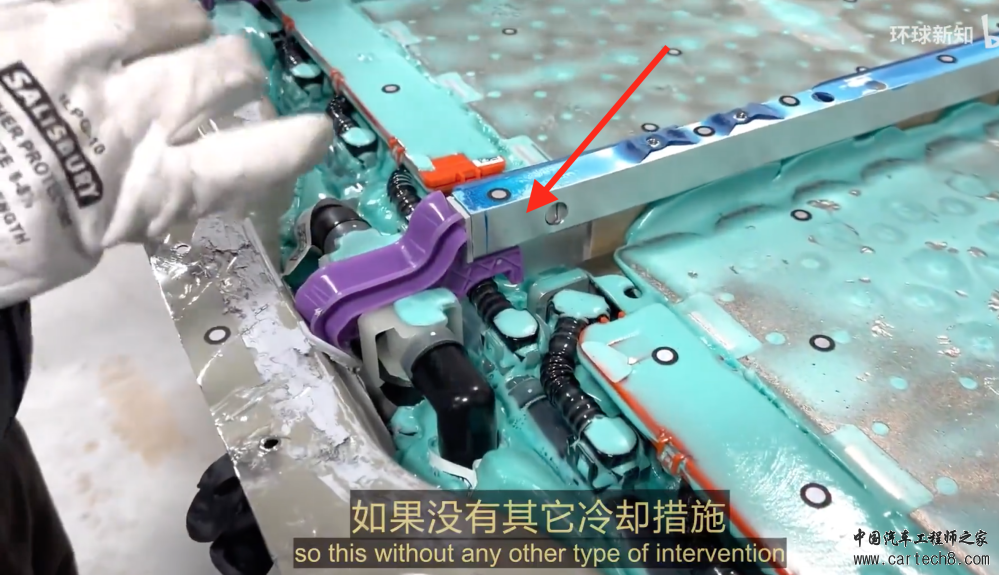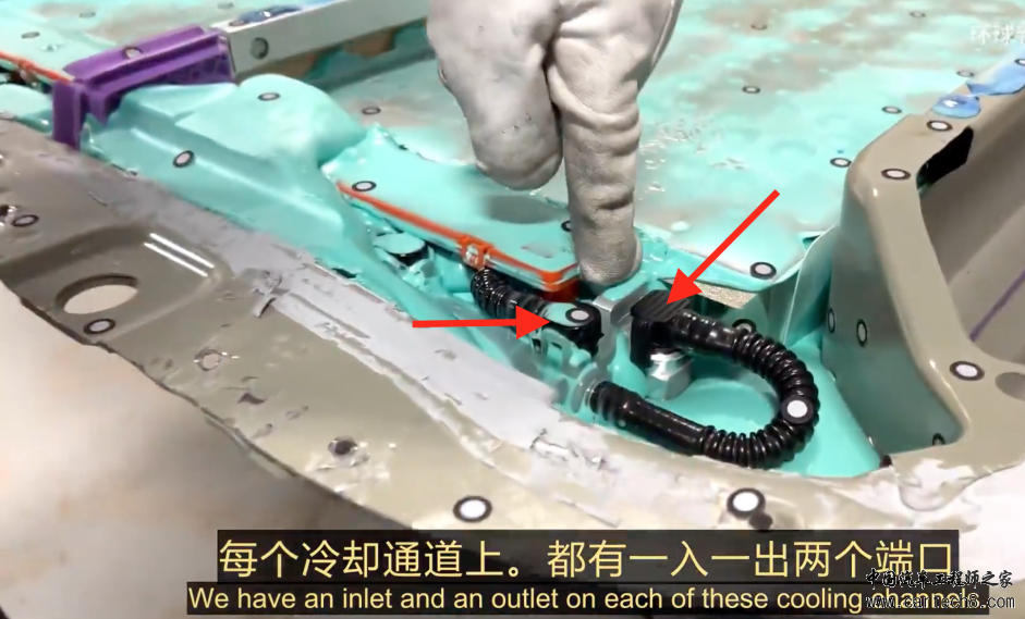 | Cybertruck风靡了好一阵子。 近日,网络流传了一段视频。Munro Live首次拆开了CyberBeast的drive unit,三个800V电机一共845hp。从之前的400V平台到如今的800V平台,可以看到一个初步的印象。 01# 800V电驱系统 ![]() 相比 Model S Plaid 的三台电机都是永磁电机而言,Cybertruck 电驱的布局是前一个永磁同步电机系统,后两个异步电机系统,两个后电驱系统是mirror对称的。 特斯拉最早用的是异步电机,后来转为永磁同步电机,然后在Model Y上用上了永磁同步+异步电机,这个搭配在蔚来的车上也很常见。这样的配置是为了高速行驶时的保持高效率。因为异步电机可以不考虑反电势随时停止工作,让前面的永磁同步电机单独出力,保持在它的高效区。另外后驱出故障时,整车也能尽量保持正常行驶,提高了安全性。而在Rivian R1上是通过在电驱系统里费钱费力地装上脱开装置来达到同样的目的。 ![]() 和ModelY的异步电机相比,在转子上加入了凹槽,这个对于噪音优化应该有帮助。 ![]() 在永磁电机的转子上继续采用了斜槽设计,但是磁钢并没有像之前采用分段的。这应该还是为了降本考虑。 ![]() ![]() 两种电机绕组都继续用了hairpin的形式。 ![]() Inverter是继续沿用了Gen4的设计,但是从400V到800V肯定有一些变化。细节要待进一步拆解。但是有一个疑问,后驱既然采用了异步电机,那inverter的三相熔断设计是不是可以在后驱的inverter上取消?这应该可以省成本。但是从拆解的视频来看,这个并没有取消。 ![]() 前驱配置了电磁差速锁,这个有助于越野功能。 ![]() 特斯拉的800V电驱在总体上还是沿用了很多400V的设计,提高了复用率,利于降本。更多的细节需要等待更进一步的拆解信息。 02# Cybertruck电池 ![]() 首先说明一下这次电池包是先拆掉了底板,所以我们全程看到的是电池的底面而不是正面。可以清楚的看到特斯拉这次使用的是绿色的发泡胶,与Model Y的红色泡沫不同,相似的是整个电池包都均分成了4个区域。 ![]() ![]() 泡沫下面是橙色的电源保护盖,这样的包裹结构可以降低操作人员的触电风险。 ![]() 首先我们注意到这块电池与Model Y 4680版的设计区别在于,在4个区域之间添加了更大尺寸的冷却板(红色箭头所示),为了防止紧挨大块冷却板左右的电芯温度变化而导致电池整体温差上升,大块冷却板中可能安装了限流器来平衡冷却液的流量,从而达到温度均衡的目的。这种情况在电池包热管理设计中比较常见,当有多条冷却路径时,为了平衡这些管路中的流量,通常需要使用限流器和流量监控器,保证所有管路流量平均。 ![]() 电池包的电芯总数目前还不好确定,因为有些被泡沫覆盖着,大体上每个区域有48*7=336颗电芯,整个电池包有大约336*4=1344颗4680电芯,多于4680版Model Y的828颗,因为Cybertrcuk需要123kWh的能量,比Model Y的66kWh高出86%,单体电芯也从79Wh提升至91Wh,猜测是采用了更高镍含量的正极和掺硅负极,这应该是特斯拉第二代量产的4680电池。 ![]() 每个冷却板都包含冷却管入口和出口,与Model Y设计一致,但目前这些管路的具体排布尚不明确,需在后续拆解过程中探究,下面的第二张图展示了整个电池包的总冷却出入口。 ![]() ![]() Cybertruck的电池是cell to body结构,由于所有电芯被泡沫紧紧粘在一起,维修和替换单个区域的可能性为零。但其实在电气管理层面,还是分模块的,电池管理系统会收集4个模块的数据然后作出判断,从而平衡各模块的电压,保证电池包的电热安全。 ![]() 这种通过取消物理模组而直接将电芯粘成一个整体的做法,可以加强电池包的整体机械强度。为了在发生热失控时保护乘客舱,特斯拉将电芯倒置(与小米SU7的麒麟电池类似),这样热失控的电芯可以向下排出高温气体及化学物质,同时下图标识出了云母板,也在一定程度给予隔热保护。 ![]() ![]() 那么电芯的高温气体会排到哪里呢?答案就在下图的电池包下壳体的排气阀。 有趣的是,排气阀的外侧有一个Goretex风格的排气口,是一种防潮膜,保证电池在不同海拔使用时内部的压力平衡,并将电池包内的湿度控制在合理范围内。 ![]() ![]() 在发生热失控时,黑色的“火花抑制器”会捕获电芯喷出的高能颗粒,并在高压下被弹开,实现大量排气的功能。而且这是一个不可重复使用的单次阀。 ![]() 除了电池倒置、云母板和排气阀,下图的电池外壳体和电池主体边粱之间纵向的空间也为排气制造了便利通道,它的另一个功能是作为侧面碰撞的缓冲区。而且在第二张图中还发现了电池主体边粱的内侧设计了一些矩形排气口。 ![]() ![]() 下面我们来看下电池底部独特的空间设计。下图左侧时电池底板,汽车行驶过程中面对着路面,而在底板的上方,4个区域之间的纵梁做了加高处理,为电池本体和底板提供了25mm左右的缓冲区,这样做是为了降低越野过程中树干和石头对电池的撞击损伤。 ![]() 最后一项是对电池底部排水阀的设计。红色箭头标识了电池底板排水口的位置,当水位高于这个口时,第二张图中排水阀内部的圆片会吸水膨胀,将顶部顶开,从而将水排出。这样的设计也为越野工况提供了便利,驾驶者不必担心电池泡水的安全问题。 ![]() ![]() 03# 800V高压连接、无线充电 作为一款“火星车”,Cybertruck采用了800V电池平台,电芯为4680大圆柱电池,电池设计方案是 4 x 200V 串联单元,内部的开关允许在并联和串联之间切换,这样可以使在 400V 和 800V 下进行最佳充电,也可