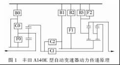 1 故障现象 一辆丰田佳美轿车,装备A140E型电控4挡自动变速器,行驶16万km。用户叙述的故障现象为:当车辆高速行驶时,偶然会出现“打滑”现象,发动机转速急剧升高,但车速降低后又能重新加速行驶;该车已经多次维修,但此故障越来越频繁。 经检查油液并询问用户和此前的维修人员,确认多次维修中油液没有出现异味、磨屑。又经反复道路试验,确认故障现象为:当操纵杆置于D位置且车速高于100km/h后,偶然出现发动机转速急剧升高,但不是“打滑”,而是由于自动变速器异常“降档”所致。所以初步认为是4挡降为3挡。由于这种故障较为少见,将其称之为挡位变异故障。 2 检查 基本检查:检查油面、油液、电器、故障灯、故障码、发动机性能,结果均正常。 进行时滞试验:当操纵杆置于D、3、2、L、R位置时,时滞反应正常。 检测主油压:怠速、失速时主油压均正常。 3 诊断分析 3.1动力传动分析 A140E自动变速器动力传递原理如图1所示。齿轮机构由共太阳轮式辛普森齿系和超速行星排组成。各挡位制动器、离合器状态如表1所列。
