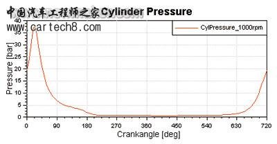 图1 动力总成的有限元网格2. 发动机动力学模型 发动机动力学计算模型包括了有限元模型及连接参数。参数包括连杆质量、刚度,活塞质量,轴承刚度,发动机悬置软垫刚度以及轴瓦刚度及阻尼等。 3. 发动机激励 发动机工作时,其激励比较复杂。主要考虑了气体爆发压力、活塞连杆组件的惯性加速度、活塞侧向拍击力、凸轮轴轴承座作用力、气门弹簧力和气门落座力等激励。这些载荷采用相应软件计算得到。某转速下的气体爆发压力曲线见图2。