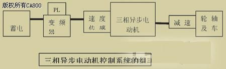 摘 要:本文介绍了如何使用普传PI7000矢量控制变频器的主板端子功能、保护功能等实现混合动力电动汽车的低频大转矩及通过汽车油门信号的大小进行调速的工艺要求,同时实现了节能与环保;着重介绍了变频器在混合动力电动汽车系统中的工作原理,变频器矢量控制的功能参数设置及调试方法,变频器常见故障及排除措施. 1 引言 混合动力电动汽车是指以蓄电池组作为动力源,用电动机和发动机驱动车轮行驶。电动机不排放有害气体并且和发动机混合驱动可以大大减少有害气体的排放量。自20世纪60年代起,日、美、欧等发达国家争相开展混合动力电动汽车的研究开发工作。我国也已与20世纪80年代开始,以电力电子为基础的电气传动技术的进步,为混合动力电动汽车的开展提供了先进的物质基础;机电一体化技术的兴起与发展,为燃油汽车这一典型的机械产品向机电一体化方向演变提供了十分丰富的技术经验。混合动力电动汽车的机电一体化配置模式,控制方法,还处在百花齐放的阶段,既不成熟,也未定型。为了保证混合动力电动汽车和谐有序发展,国家已创造了一个良好的政策环境、市场环境和消费环境,因为发展混合动力电动汽车对节约能源、缓解环境污染具有重要意义,并且汽车工业是耗油大户,目前我国汽车工业的耗油量占石油消耗的1/4。2004年,我国产油1.7亿吨,进口突破1亿吨,石油消耗量占世界石油消耗量近20%,但GDP只占世界GDP 的4%,在这种情况下,发展取代燃油型交通工具的混合动力电动汽车对我国经济和社会的可持续发展至关重要。另外,汽车业的发展给环境保护带来比较大的压力,混合动力电动汽车废气排量少之又少,噪音污染很小,发展混合动力电动汽车可大大减轻环境污染方面的压力。普传PI7000矢量控制变频器已成功应用到混合动力环保、节能型电动汽车系统中,已通过长期的各种试验与检验,现已在澳门的公路上稳定行驶,达到了环保、节能的效果。 2 混合动力电动汽车的传动系统 汽车是一种在陆地露天运行、结构紧凑、具有车载能源的走行机械,工矿复杂。既要能适应高速飞驰、又要能频繁起制动、上下坡快速超车紧急刹车;既要能适应雪天、雨天、盛夏严冬、雪后洒盐等恶劣天气条件,又要能承受道路的颠簸振动,还要保证司乘人员的舒适与安全。混合动力电动汽车的核心,是要用变频器控制电动机的系统取代其机械推进系统,用电池代替汽油作为车载能源,在实现零排放或少排放的前提下,满足燃油汽车各项性能、价格指标的要求。据此可将混合动力电动汽车传动系统归纳为以下几点: 1) 基速以下大转矩以适应快速起动、加速、负荷爬坡、频繁起停等要求,基速以上小转矩、恒功率、调速范围宽以适应最高车速和公路飞驰超车等要求,上述要求可通过PI7000矢量变频器功能参数的简单设置即可实现. 2) 整个转矩/转速运行范围内的效率最优化,以谋求电池一次充电后的续驰距离尽可能长。一辆燃油汽车带50kg汽油约可行驶700km,如改装为带 400kg铅酸电池的混合动力电动汽车,则只能行驶100km。最近报导,采用最新研制的燃料电池可达到450km。开发比能量更高的新型电池是最根本的解决办法,但降低电气传动系统的损耗也是重要的一环,使用PI7000矢量变频器控制电动机,可达到高效节油、节能。 3) 电动机及电控装置结构坚固、体积小、重量轻、免维修或少维修、抗颠簸振动.PI7000矢量变频器将PLC及信号装置等集成到一体。 4)操纵性能符合司机驾驶习惯,运行平稳、乘坐舒适,电气系统换效保障措施完善。比如,当电压命令信号线、电流反馈或速度传感器线断或短路时,可能引起振幅达正负最大输出转矩的振荡。必须具备能及时发现此类事故的措施,并在一旦发现事故时,立刻切断电动机的电源. PI7000矢量变频器和PLC配合使用,具有快速的过流、过载、过压、PG线断等多种保护功能,一旦保护立即停止输出电压,司机按复位按钮即可复位恢复正常工作状态,司机可通过触摸屏非常直观地监视电池电量、运行转速、工作电流等,司机也可通过触摸屏查询故障时的电流、频率、电压及故障时的状态等,操作及排除故障方便快捷。 3 混合动力电动汽车的系统结构图及其工作原理: