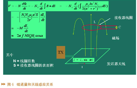 系统工作要求是,在应答器方面需要有低频的电线,高频发送器,以及一些系统可选后备电子的电路,此外还要有一个智能的单片机和单片机的部件;基站系统要求有低频发送器、高频接收器、天线、单片机和单片机的固件部分。 双向通讯距离有一些参数,应答器需要天线调谐及Q,天线定位使用三维天线,接收灵敏度,输出信号的调制深度;基站需要输出功率和接收的灵敏度。 天线设计低频普遍是采用125KHz,现在使用LC谐振电路;天线类型使用空心线圈或者铁氧体的磁心,LC的谐振频率和基站的载波频率相同,范围被动标签在 1米左右,主动标签在5米左右。高频率从315MHz到960MHz,最常见的是315MHz和433MHz,使用偶极电线刻在PCB上,范围相对高得多,被动标签大概在5米左右,主动标签在100米左右。 图6所示为一个磁通量和天线感应电压关系的公式,这里主要是说明在判断感应电压的时候看到很多的因素:比如线圈的匝数、接触器线圈表面积、频率、接收电线和发送天线的角度都会影响到天线感应的电压。