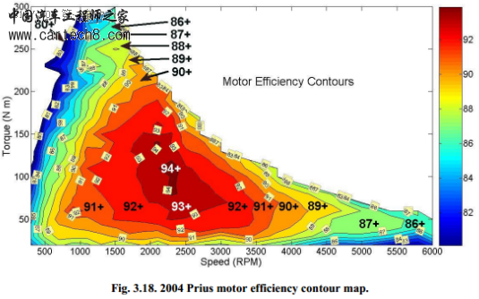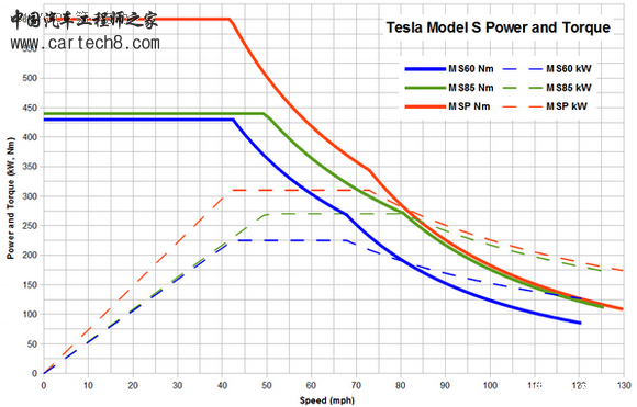 | 电动汽车为什么不用变速箱来控制转速?首先,内燃机低转扭矩小,最大转速低。其次,变速箱对改善驾驶性的效果有限,相对于增加变速箱带来的降低传动效率,增加车重,增加成本,就很不值当。 首先,电动机的最高转速比一般汽车用的内燃机要大得多。 比如特斯拉Model S的最大转速是16000转,日产Leaf(启辰晨风)也有10390转。而一般的汽车内燃机红线转速也就6000转,跑车也就8000转。在单减速比的情况下,车速和发动机转速成固定比例。其公式是: 车速 = 发动机转速/减速比 x 车轮半径 x 2Pi x 60(将每分钟转速换为每小时转速)/ 1000(将米换为千米) 假设内燃机汽车的最终减速比和轮胎半径都跟电动汽车一样,那么电动汽车能够达到的速度就会比内燃机汽车更高。 其次,因为内燃机的低转扭矩较差,所以实际起步需要的减速比还要更大,进一步使得内燃机汽车没办法通过一个减速比匹配行驶需要的速度。 如果只看最高转速和最高车速的关系的话,也并不能完全解释为什么内燃机汽车不需要变速箱。日产leaf电机最大转速是10390转,最高车速是150kph(公里/时),本田思域1.8的红线转速是6700转,如果最终减速比和轮胎半径一样的话,最高车速应该能达到96.7kph,日本本土高速公路限速90kph,不考虑超速的问题的话,难道日规思域就不需要变速箱了吗? 甚至还有些高转发动机,比如思域Type-R,马自达的转子发动机,以及各种摩托车发动机,乃至F-1赛车,曲轴转速上万,跟电机差距并不大,为什么也需要变速箱呢? 首先,轮上扭矩=发动机输出扭矩x减速比,减速比越大,发动机经过放大后实际在车轮端输出的扭矩就越大。发动机在转速为0的时候扭矩是趋向于0的。所以0转速起步根本就不可能,都需要怠速起步,而且还需要一个比较大的减速比来放大扭矩。但电动机在转速为0的时候就可以输出最大扭矩,不但不需要怠速,而且减速比也可以做得相对比较小。 日产leaf的最终减速比是8.1938,相比之下,本田思域自动版的1档变速比是2.666,主减速比是4.437,所以1档时的最终减速比是2.666x4.437=11.829,明显高于leaf。那么这个civic在一档达到的速度值相比leaf就还要更低得多。根本没办法满足甚至是道路限速内的行驶需要。 关于上面这两点,计算的例子请参照电动汽车为什么不需要很多前进档?——无往的回答,这里为了大家参考阅读方便,把这部分贴过来。 ![]() 但我还想补充一些其他很重要的原因。 仅仅看上面两点,还是不能够说明为什么内燃机汽车需要那么多前进档。如果只是为了满足起步扭矩和最高车速,那么有两个档位似乎也够了。实际上很多内燃机汽车测试0-100公里加速的时候,就只用到1档和2档。按照无往上面的计算,保时捷911的2档最终减速比是7.88,相应的极速就能够达到128KPH,这个速度完全够了,为什么还需要3、4、5、6、7档?这里就牵扯到其他3个原因: 内燃机在高转速时的噪音和抖动(NVH)太明显,所以需要通过变速箱在日常驾驶时用较小的减速避免发动机在高转速运转,但汽车用电机即使在高转速时NVH也完全可以接受。 内燃机的最大功率曲线变化是很剧烈的,实际上能够输出最大功率的区间很窄。在车速一定的情况下,如果需要急加速,可以通过变速箱,使得发动机运行的转速更接近输出最大功率的转速,从而获得更大的加速度。 内燃机的高效区间比较狭窄,所以需要变速箱,在不同的车速,不同的动力需求的情况下,将发动机的转速和负荷调整到比较经济的区间。而电动机的高效区间相对比较宽泛。 噪音比较好理解,即使内燃机汽车可以一直在2档行驶,那么高速巡航转速也得动辄5、6000转,那个噪音你如果体会过不是特别喜欢速度与激情肯定不会喜欢的。 关于第二点,我在前面介绍了一个公式,即轮上扭矩=发动机输出扭矩x减速比,也就是说,通过变速箱改变最终减速比,可以改变发动机扭矩放大的倍数。 还是以保时捷911和特斯拉Model S为例。911 GT3的外特性曲线或说最大扭矩/功率曲线如下图(lb·ft即磅英尺,跟牛顿米一样,是一个扭矩单位),可以看出,随着转速不同,911 GT3的功率变化是巨大的,7500转左右输出的功率是14500转时的近8倍: ![]() 我们假设现在这辆911正在以120公里/小时的时速巡航,那么此时各个档位对应的转速如下: ![]() 你作为一个真正的车迷,即使是通勤路上也都是手动模式,此时你非常机智的选择放在7档巡航,转速为2324RPM,此时噪音和抖动都比较小,燃油经济性也较好。 但突然,旁边有辆Model S P85向你赤裸裸地发动了挑衅,这时候要榨取这辆传奇车型的最大动力,你该怎么办? 如果你的变速箱这个时候仍然放在7档,那么即使油门到底,发动机输出的扭矩也只有225磅英尺,经过变速箱和主减速器的放大,先不考虑传动效率的损失,到车轮上也不过只有225x2.44=549磅英尺而已。靠这点扭矩想干翻特斯拉? 如果你迷信发动机扭矩决定最大加速度的说法,这时候一个很明显的选择是直接降到3档,转速瞬间上升到5074RPM,接近最大扭矩转速,此时发动机输出300磅英尺的扭矩,经过变速箱和主减速器的放大,到达车轮上的扭矩有300x5.33=1600磅英尺。 特斯拉Model S P85这个时候发动机扭矩输出是325牛米也就是240磅英尺,乘以9.73的最终减速比,是240x9.73=2332镑英尺。虽然看起来是Model S P85轮上扭矩牛一点,但是别忘了它沉啊。P85 S重2140kg,但你911 GT3只有1430kg啊,1600/1430=1.12明显大于后者的2332/2140=1.09,你立即取得微弱的优势(抱歉这