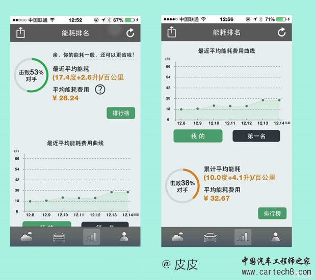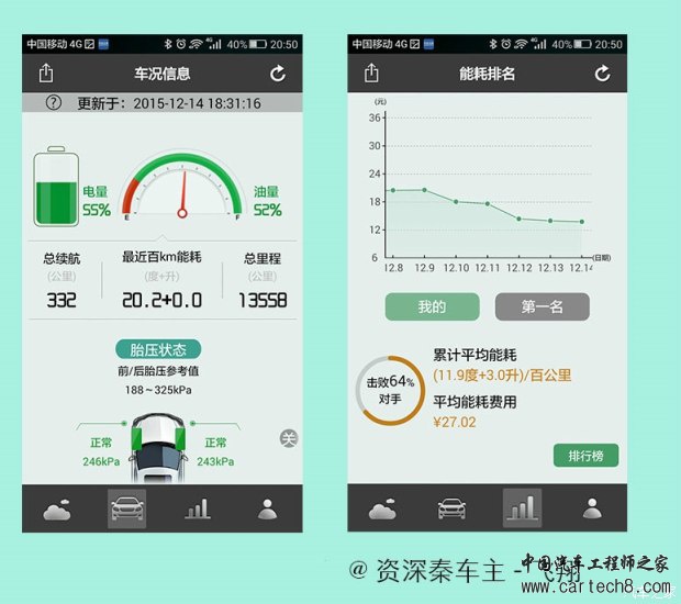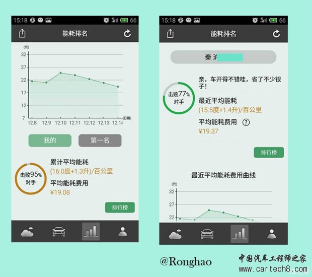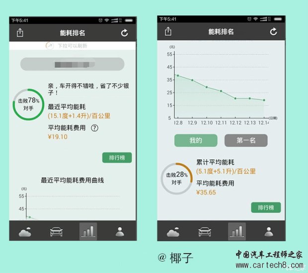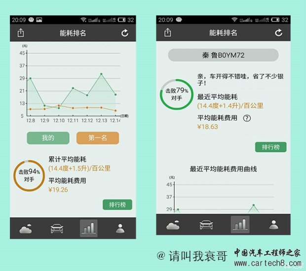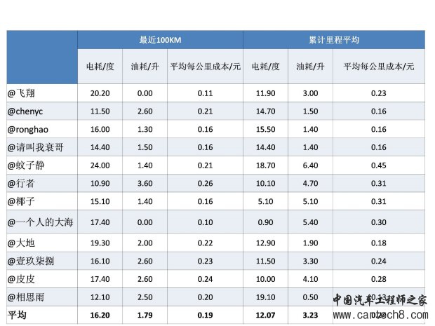 从2013年秦上市以来,油耗就是迪粉和迪黑撕X的中心。说实话比亚迪冤枉,百公里1.6升的油耗是根据工信部插电式混合动力汽车的油耗测试方法来的,奥迪A3e-tron和宝马530le的油耗都低的不像正经车。但是,比亚迪作为国产车,第一个出了这个风头,自然也承受了最多的口水。 由于加入了纯电里程,不如原来纯燃油那么容易统计,至今,秦的百公里能耗依然是大家讨论的热点话题。所以我们索性把群内秦车主的实际行车能耗统计在一起,做一些简单的分析,方便大家参考,尤其是秦的准车主。 部分秦车主的能耗统计电耗和油耗数值来自于车主提供,每公里成本统一计算方式为(电耗X0.55/度+油耗X5.5/L)/100 结论 1,跟同级别燃油车相比,秦的行车成本优势还是比较明显的。秦的综合平均每公里成本为0.24元,同价位的1.4T速腾平均百公里油耗约7.5L,每公里成本为7.5X5.5/100=0.41元。秦的成本大约是其58%。(其他同级别车请大家自行比较) 2,毫无疑问,秦用电越多成本越低。我们的统计数据中最低的累计行车成本仅为0.13元,已经低于地铁的价格。秦最适合有条件充电,且市内行车占绝对主流的车主。 最后,鞠躬感谢提供数据的各位车主 ![]() |