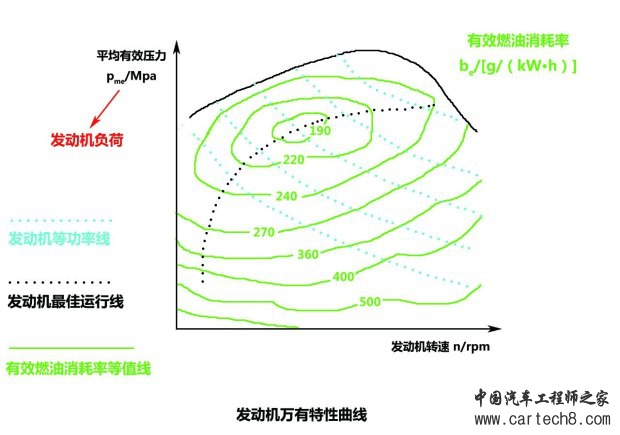 今天我们只讨论其他变量尽可能保持一致时,关于发动机的最重要的特性图——万有特性曲线——它会告诉你CVT到底省不省油。 作者:8车道
