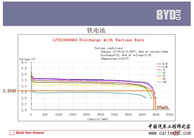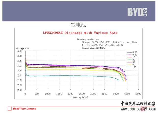 最近比亚迪的新能源车很火,唐不孚众望一举实现了王大大取得2015年中国(有附加条件)第一的诺言,随着唐论坛的火爆,秦论坛也人气上升,不过这回是因为电池和纯电续航里程维权帖。车质网上一百多例实名认证投诉大部分都是与电池和续航有关。与此同时,一种说法在蔓延,据称比亚迪为了延长秦的电池寿命特意隐藏部分“保留电量”,所以充电量是达不到车辆标称值的。这是真的吗?让咱用数据追寻真相。 首先看看BYD的官方资料上面的电池放电曲线,引用自“来源1”(链接见文末,下同)。这组曲线是由不同的放电C数下的放电容量-电压曲线组成,图中放电截止电压2.5V。本文引用的车主数据都是在停车状态,动力电池组放电电流比较小,因此我们使用最为接近实际情况的0.2C曲线,也就是最上面的深蓝色线来分析。 为了保证电池单体不会过充电,秦显示SOC=100%(即电池充满)是以电压最高的电池单体为准。我们看看之家认证秦车主的实测数据,下图引用自“来源2”。 触发停止充电的是模组十的14号电池单体,3.410V。咱在BYD的官方电池放电曲线组中标出来,见下图,此时左端的剩余容量大约20mAh,占总容量4480mAh的0.4%,几乎可以忽略不计。 同样为了保证电池单体不会过放电,秦显示SOC=0%(即电池放尽)是以电压最低的电池单体为准。我们看看另一位之家认证秦车主的实测数据,下图引用自“来源3”。 触发停止放电的是模组五的16号电池单体,2.834V。在BYD的官方电池放电曲线组中标出来,见下图,此时右端的剩余容量大约50mAh,占总容量4480mAh的1%,而此时秦显示动力电池还剩5%的容量。 有人会说其他单体还有至少3V呢,套进曲线不是还有3%嘛?问题是,如果其他单体继续放电,那2.834V就会过放电,甚至被反向充电,导致报废。因为秦的串联电池组的容量是以最低容量的单体决定的。 事实上,2.834V是我找到最好的个案了。还有更低的个案,而且是经过充分均衡的,下图引用自之家认证秦车主“来源4”。 上图显示,所有的电池都已经低于2%容量,最低的是2.635V,剩下不到1%容量,秦居然显示动力电池剩余6%容量。 综上所述,秦显示动力电池100%时,就是100%;显示5%时,实际上很可能只剩下1%了。秦的动力电池组没有“保留容量”,所谓充电预留2~3%,放电预留6~8%的说法是站不住脚的。其他新能源车是否有“保留容量”,有待进一步观察。 饭后甜点:跟镍氢电池不同,减小充放电SOC使用范围,并不能延长磷酸铁锂电池的循环寿命,反而是有所减损,详见《储能用磷酸铁锂电池循环寿命的能量分析》,引用自“来源5”。虽然论文测试的是储能用磷酸铁锂,但与动力用磷酸铁锂电池具体差异未见报道。 |
