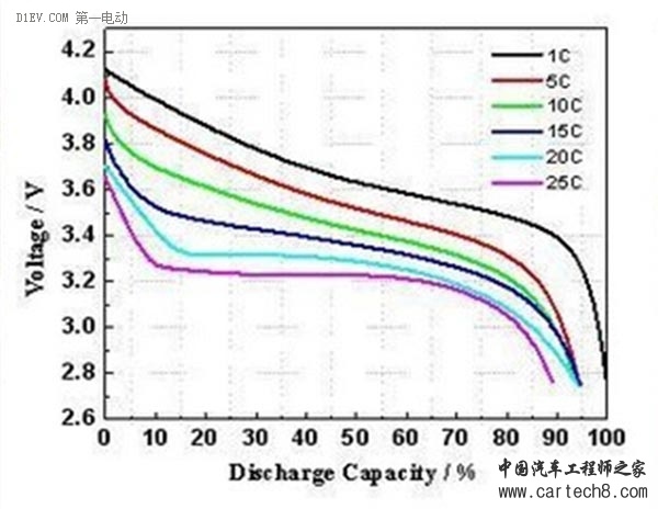 据说很快就要进入21世纪以来,最冷的冬天了。各位亲爱的车主们,自从入冬之后,普遍感觉电池严重不经用、续航里程越来越短。也常常听到很多车主各种抱怨,神马里程短、电池容量达不到标称容量之类的声音。 之前,小编从暖风热源方面给大家分析过,冬天为何开暖风会大大影响续航里程,公布了目前大家冬季用车的情况。今天,小编就从电池容量专业的角度来跟大家聊聊的动力电池的那些事儿。 对于电动车而言,电池是非常关键的部件。注意,一下所说的电池指的都是作为驱动源的动力电池,不是前舱的电瓶。因为,前舱的电瓶不存在这个问题,在行驶时它基本都处于被充电过程,而且续航里程也跟这个小家伙一点儿关系都没有。电池的容量是与续航里程直接相关的指标,容量高,续航里程长,容量低,续航里程短。那么,什么是容量,根据国家标准GB/T31486-2015《电动汽车用动力蓄电池电性能要求及试验方法》文件中的定义,有个【初始容量】的概念: 新出厂的动力蓄电池,在室温下,完全充电后,以1I1(A)电流放电至企业规定的放电终止条件时所放出的容量(Ah)。 要求的测试环境规定为:温度为25℃±2℃,相对湿度为15%~90%,大气压力为86kPa~106kPa。据度娘说拉萨冬天气压是65kPa,国标就不考虑拉萨人民冬天用电动车的感受了? 测量仪器、仪表准确度要求: ---电压测量装置:不低于0.5级 ---电流测量装置:不低于0.5级 ---温度测量装置:±0.5℃ ---时间测量装置:±0.1% 1I1(A)是个什么鬼?举个栗子,如果你的电池容量写着50Ah,1I1(A)就是50A,2I1(A)就是100A,以此类推。 以上的【初始容量】基本就是厂家公告中的标称容量,这个数值乘以电池包的总电压,就是标称电量。 说到电动车,有两家公司一直是焦点,米国的特斯拉和我国的比亚迪,他们用的电池各不相同,特斯拉用的是松下公司的电池,据网上的信息,是所谓的三元材料,也就是说电池的正极里含有3种金属材料;比亚迪用的自己生产的电池,他们内部叫铁电池,当时传出来各种铁电池的解释版本,现在众所周知,材料是磷酸铁锂。这两个材料有什么区别呢?小编给大家找了一些资料,让大家来了解一下。 当然,电池材料体系的选择与消费者关系不大,厂家往往根据市场趋势和自身条件做出他正确的选择,下图是两种材料的电压-容量曲线。 这是磷酸铁锂和三元电池在放电过程的电压变化情况,磷酸铁锂的电压大部分时间内基本不变,三元材料电压变化较大。使用的电压范围也不一样,磷酸铁锂大概3.3V~2.0V,三元材料4.2V~2.5V。 这里为什么要给出这张图,因为后面说到的很多东西都围着这张图在变化,据电池工程师说,他们大部分时间的研究都以这张图为基础,怎么才能让图中的数据改变一下,改变了之后对动力电池的性能而言又说明了什么。对于消费者而言,这张图的变化也就是容量的变化。 汽车的安全问题是首要问题,燃油车的出事故的危害我们常常见到,电动车的安全如何保证?电器工程师们说,我们有很多监控、很多保护电路,很多级别的安全防护。电池工程师们说电器工程师不懂电池,我们电池也有很多的防护,都集成在电源管理系统里,也就是大家常常听到的BMS。所谓电源管理系统,就是专门管理电池的各项指标的系统,电池怎么工作听它指挥。 下面说一个概念,【安全冗余】: 就是说在前面国标所说的【初始容量】的基础上,保留一部分容量,这部分容量不能被使用。比如原来100,可能给你用的只有90甚至80。这部分保留容量是出于安全的目的,其次是为了保证电池的使用寿命。 电池既不能充的太满,需要给充电控制系统留出一些调整的空间而防止过充电。过充电可能有些人不理解,但是生活中由于过充电而造成危害的示例很多,比如:由于使用各种杂牌充电器给手机充电,导致电池爆炸。相信这样的报道大家看过很多了吧?现在应该理解过充电的危害了。 同样电池也不能放的太空,考虑到车辆在没电以后还可能长期存放。为保证电池不被过放电而影响安全和性能,必须在消费者认为的0%以下还保留少量的电量。 另外,由于电池材料的特性,如果电池一直在使用电压范围内满充满放,相对于在充放电两端都保留一些容量的做法,其使用寿命会显著降低。月满则亏,水满则溢就是这个道理。 所以,就算是特斯拉,在动力电池的上端,就是SOC达到100%之后,保留10%的充电空间不能充电;电池底部,就是SOC减少至0%的时候,仍然保留了10%电量无法释放。国内车企在动力电池安全冗余的设置上也是相似的,以比亚迪为例,电芯材料为磷酸铁锂的动力电池,由于的安全性较高,使用寿命较长,所以在上端只保留了2~3%的冗余,底部保留比特斯拉要少,大约6~8%。 所以这个电量冗余一下就去掉了10%~20%的电量,这个才是车主拿到车后真正可使用的电量,而不是公告里的标称电量。 在实际的用车过程中,还有很多影响因素影响电池电量的发挥。 这还不算完,比亚迪迪车会里曾经见过一个口诀,是教车主们如何省电的,大概意思是要尽量用经济模式,少急加速急减速。这个道理在燃油车似乎可以理解,你排量就这么大,非得一脚地板油,也改变不了发动机只能转那么快的现实。虽然提速是快了一些,但是会提高油耗,说白了就是费油;而且,大量的燃油喷入燃烧室后,会有一部分油燃烧不充分,给雾霾做贡献了。但是更专业的解释是什么呢,,下面这张图展示了电池的功率特性。 这个是三元材料