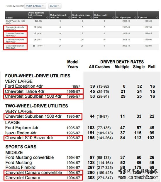 上一周的《不以出身论英雄 浅谈日韩车不耐撞?》浅析了个别日韩系车辆在碰撞事故中车上人员死亡率偏高的现象,从IIHS的统计结果来看确实是越大越重的车越安全。不过在文章中也提到了有关于雪佛兰品牌“刷榜”的问题,“大车安全”的结论似乎也不那么站得住脚。那么这期来讲讲正确的安全车辆是什么样的。 根据IIHS的说法“A bigger, heavier vehicle provides better crash protection than a smaller, lighter one, assuming no other differences(不考虑其它差异,更大更重的车在碰撞事故中能提供比小车更好的保护).”似乎小型车成为高死亡榜上的常客是“理所应当”。然而根据IIHS发布的高死亡率排行榜,不难发现也有大型车和超大型车列于榜前。其中超大型车有两款:雪佛兰的SUV-Suburban和福特水星的轿车-大侯爵;大型车两款:雪佛兰的跑车-科迈罗和皮卡-西维拉多;中型车两款:道奇的SUV-Nitro和马自达6。这6款中大型车里,有5款来自美国,这回还能用“美系主销中大型车”来解释吗? 继续往前翻IISH的数据报告,可以发现雪佛兰依然是“习惯性霸榜”。从2008年和1997年的两份报告上可以看出,雪佛兰在大型和超大型SUV以及跑车领域,不仅死亡率较同类车型偏高,甚至数款车型的乘客死亡率超过全车型平均值,要知道这些数据还是建立在“大型车更安全”的基础之上。恐怕车型“年迈”才是雪佛兰车型死亡率偏高的真正原因。 2009年,也是IIHS成立50周年之时,IIHS用一新一老两台雪佛兰轿车做40英里(64公里每小时)正面偏置碰撞实验。其中老车是1959款雪弗兰Bel Air,新车是2009款雪佛兰迈锐宝。实验时两车正面相向、沿中轴线偏置,之后分别加速至64Km/h(相对速度就是128km/h)之后碰撞,再根据碰撞结果分析车辆碰撞成绩。在这次碰撞试验中,2009款迈锐宝驾驶室基本完好,而1957款老爷车Bel Air的驾驶室已经完全溃缩,无法为驾驶员提供足够的保护。 1957款Bel Air级别较2009款迈锐宝高一个级别,整车更大更重,但依然难敌新迈锐宝整车安全技术的提升。采用新材料、新制造工艺、更合理的造型设计,再加上现代计算机辅助技术,新车型的车身设计水平绝非老爷车可以相比。不仅是像IIHS五十周年纪念视频中那样,新老跨度50年的车型会出现大幅度提升。单论迈锐宝这款车本身,十多年来的发展进步,也清楚地反应在碰撞测试成绩中。 无论是消费者还是汽车厂商和检测机构,都对汽车安全水平提出了更高的要求,汽车变得越来越安全也是大势所趋。但另一方面,车身设计的复杂程度也在不断上升,早已不是当年“望闻问切”就可以下结论的年代,于是碰撞测试的必要性就得以体现。单凭在马路上看见几次事故来下判断,也会因条件不同而呈现不同结果,这就体现了大数据统计的必要。正所谓“买新不买旧,安全不看铁皮,关注测试和统计”。 |
