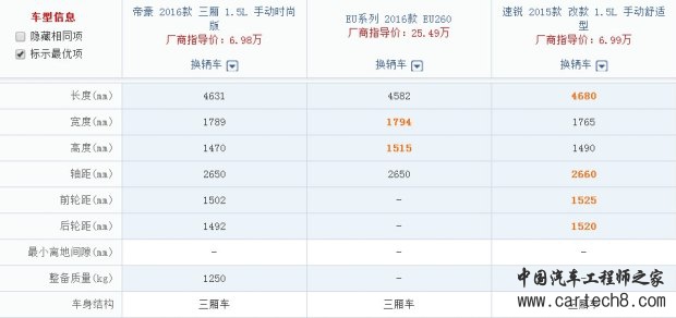 横评:帝豪EV/北汽EU260/比亚迪电动秦