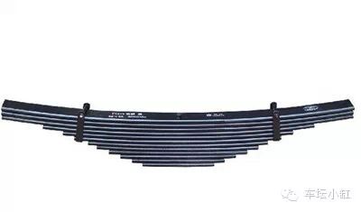 钢板弹簧由若干片长度不等、曲率半径不同的弹簧钢片叠合在一起组成的一根近似等强度的弹性梁,为了防止弹簧变形时各个钢片之间发生干摩擦,在安装钢板弹簧的时候会在各片之间涂上适量的石墨润滑剂。
