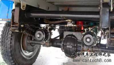 钢板弹簧目前主要应用在货车和农用车上,细心的朋友会发现在一些农用车上后轮有钢板弹簧但并没有减振器,这是因为钢板弹簧本身就有缓冲、减震的功能,又可以担负传力和导向的任务,所以在钢板弹簧的钢板够多时减振器是可以省去的,但是个别SUV车型比如猎豹Q6也用的是钢板弹簧: 农用车考虑到载重量和使用环境,采用钢板弹簧是不错的选择: