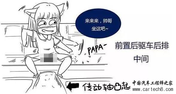 相比之下,后驱车的传动轴需要从车中间穿过,就会给后排留下一条“男性的印记”,“凸”起那部份让女乘客看起来会难为情。