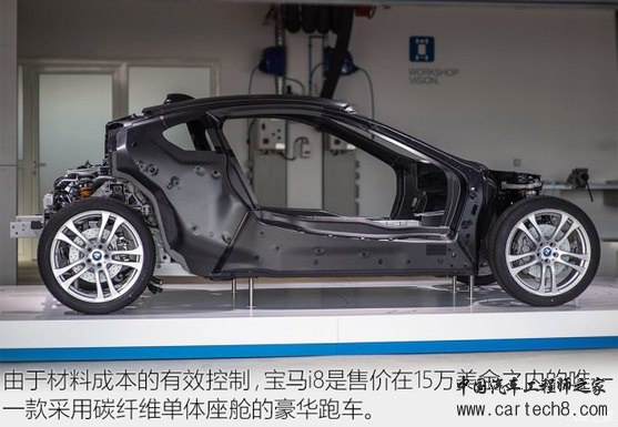 虽然本田没有实现他们美好的愿望,但宝马却切切实实地将CFRP材料的成本降了下来,并应用到了旗下两款新能源车型上i8和i3上。特别是i3,它的车身结构也算得上是一种碳纤维单体座舱,最低售价不足42万元人民币,就能让你享受到“奢华”的碳纤维材料了,是不是有一种赚到的感觉呢?