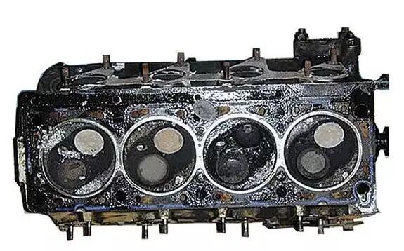 任何发动机,都会有积碳产生,七八万公里的车如果一直没有进行积碳处理那么上到奔驰宝马下到长安五菱,把缸盖揭开一看就跟上图似的,如果一直在市区使用那么积碳会更多,当积碳越来越多的时候,就会影响到发动机空气和燃油的正常燃烧了,由于发动机工作时内部温度很高,这些胶状物又有吸油的特性,吸附一部分燃油后参与正常燃烧的燃油就少了, 发动机的动力尤其是提速就会变得“迟钝”,出现油门不灵敏等现象,再严重的,当积碳吸附的燃油足够多的时候,由于其燃点比纯燃油要低,所以往往容易自己出现燃烧现象,一旦燃烧则这个气缸内的混合气体都会燃烧,换句话讲,在不该燃烧的时候被这些积碳给点着了,积碳干了火花塞该干的活,这种现象就叫爆震,造成的危害类似于咱们人类的内分泌失调、生物钟混乱。