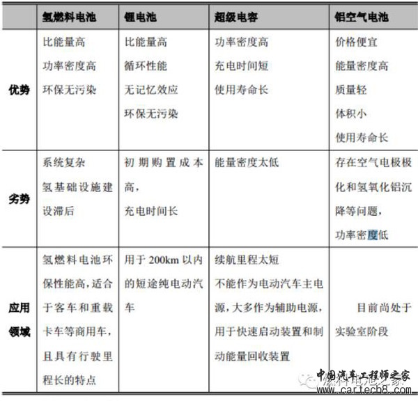 一、氢燃料电池产业链 在氢燃料电池产业链中,上游是氢气的制取、运输和储藏,在加氢站对氢燃料电池系统进行氢气的加注;中游是电堆等关键零部件的生产,将电堆和配件两大部分进行集成,形成氢燃料电池系统;在下游应用层面,主要有交通运输、便携式电源和固定式电源三个方向。 二、动力电池优劣势比较 目前在交通运输用动力源方面,主要有四种技术路线:锂离子电池、氢燃料电池、超级电容和铝空气电池。其中锂离子电池、超级电容和氢燃料电池得到广泛的应用,而铝空气电池尚处于实验室研究阶段。能源补给方面,锂离子电池、超级电容适用于纯电动汽车,但是需要外部充电,而氢燃料电池汽车则需要外部氢气加注,铝空气电池则需要补充铝板和电解液。 四种技术路线优劣势比较 1 氢燃料电池特性 (1)良好的环境相容性 氢燃料电池提供的是高效洁净能源,其排放的水不仅量少,而且非常干净,因而不存在水污染问题。同时由于燃料电池不像发动机那样需要将热能转换为机械能,而是直接把化学能转化为电能和热能,能量转换效率高,噪音小。 (2)良好的操作性能 氢燃料电池发电,不需要复杂庞大的配置设备,电池堆可以模块化组装。例如,一个 4.5MW 的发电装置可以 有 460 个电池组件组成,其发电厂占地面积比火力发电厂小得多。氢燃料电池适合作为分散发电装置。另外与火力、水力和核能发电相比,氢燃料电池电厂的建设周期短,扩建容易,可以完全根据实际需要分期建设。同时氢燃料电池的运行质量高,应对负载的快速变动(如高峰负载)特性优良,在数秒内就可以从低功率变换到额定功率。 (3)高效的输出性能 氢燃料电池工作时将燃料储存的能量转化为电和热,转换电能的效率在 40%以上,而汽轮机只有 1/3 可以转化为电。 (4)灵活的结构特性 氢燃料电池组装非常灵活,功率大小容易调配,与传统发动机相比,由于氢燃料电池良好的模块性可以在不增加基础设施投资的基础上,通过增减单电池的片数即可轻松实现输出功率和电压的调整,所以建设起来也很容易,而且比较容易实现对电网的调控。燃料电池的这一特点提高了系统稳定性。 (5)氢的来源广泛 氢作为二次能源,可通过多种方式获得,如煤制氢、天然气重整制氢、电解水制氢等等。在化石能源被耗尽时,氢将成为世界上的主要燃料及能量。而采用太阳能电解水制氢,过程中没有碳排放,可以认为氢是终极能源。 (6)存在的瓶颈 从现阶段发展来看,氢燃料电池的普及遇到一定的瓶颈,如电池本身成本较高,基础设施尚未普及等。 2 锂离子电池特性 (1)电压平台 锂离子电池由于采用的正负极材料不同,其单体电池的工作电压范围为3.7~4V,其中应用规模较大的磷酸铁锂单体电池工作电压为 3.2V,是镍氢电池的 3 倍、铅酸电池的 2 倍。 (2)比能量大 当前乘用车锂离子动力电池的能量密度接近 200Wh/kg,预计 2020 年达到300Wh/kg。 (3)电池寿命短 由于电化学材料特性的制约,锂离子电池的循环次数没有取得突破,以磷酸铁锂为例,单体电池循环次数可以达到 2000 次以上,成组后仅为 1000 次以上。无法满足公交运行 8 年期限的要求。 (4)对环境影响较大 锂离子电池采用轻金属锂,尽管不含汞、铅等有害重金属,被认为是绿色电池,对环境污染较小。但实际上由于其正负极材料、电解液包含镍、锰等金属物,美国已经将锂离子电池归类为一种包含易燃、浸出毒性、腐蚀性、反应性等有毒有害性的电池,是目前各类电池中包含毒性物质最多的电池,并且因为其回收再利用的工艺较为复杂导致成本较高,因此目前的回收再利用率不高,废弃的电池对环境影响较大。 (5)成本依然较高 锂离子电池初期购置成本高,以目前公交车用动力电池主流产品磷酸铁锂电池为例,价格大约在 2500 元/kWh,随着电动汽车的普及,有望在 2020 年降低到 1000 元/kWh以下。由于单体电池成组后循环次数的制约,公交车通常在 3 年左右即需要更换电池,运营单位成本压力较大。 (6)对电网影响较大 首先大规模应用纯电动汽车,由于充电需求较大,充电设备对电网的谐波干扰将会凸显,影响电网的供电质量;其次,在快充时,由于是大倍率充电,因此充电功率较高(乘用车在 50kW、客车在 150~250kW 左右),对电网的负荷冲击较大。 因此,基于目前锂离子电池的技术水平来看,其电动汽车方面的应用主要在行驶里程小于 200km 的短途纯电动汽车中。 3 超级电容器特性 (1)极高的充放电倍率 超级电容具备较高的功率密度,可在短时间内放出几百到几千安培的电流,充电速度快,可在几十秒到几分钟内完成充电过程。超级电容公交车和有轨电车就是利用此特性在短时间内完成充电,驱动车辆前进。 (2)循环寿命长 超级电容的充放电过程损耗极小,因此在理论上其循环寿命为无穷,实际可达 100000 次以上,比电池高 10 ~100 倍。 (3)低温性能较好 超级电容充放电过程中发生的电荷转移大部分都在电极活性物质表面进行,所以容量随温度衰减非常小,而通常锂离子电池在低温下容量衰减幅度甚至高达70%。 (4)能量密度太低 超级电容应用的瓶颈之一就是能量密度太低,仅为锂离子电池的 1/20 左右,约 10Wh/kg。因此不能作为电动汽车主电源,大多作为辅助电源,主要用于快速启动装置和制动能量回收装置。 4 铝空气电池特性 (1)材料成本低、能量密度高 铝空气电池的负极活性材料是含量丰富的金属铝,价