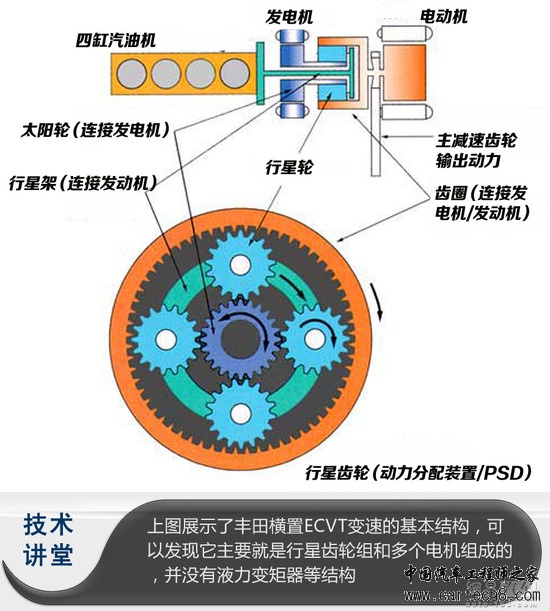 前两天有朋友问到了凯迪拉克的凯雷德混动车型,说凯迪拉克技术真是强大,6.0排量的汽油机可以搭配CVT无级变速器,当时我给他的回复是凯雷德混动车型使用的是电子无级变速器ECVT,不是通常我们见到的那种使用链条或者钢带的CVT变速器。但是关于ECVT,一两句话也说不清楚,所以就有了今天这篇文章,说说在很多混动车型上使用的ECVT。 Q1:ECVT和普通无极变速器结构上有何区别 A:前者实际上是一个行星齿轮组减速机构,后者则是钢带与锥轮的组合 首先要说的就是这个ECVT的结构,它的核心就是一套行星齿轮组和多个电机,行星齿轮组可以说是个挺神奇的东西,变速器、差速器里面都会出现它的身影;ECVT里面的电机也挺忙活,有的负责发电,而有的负责驱动调节车速。与现在的普通CVT相比,ECVT要更为简单。 那么ECVT是如何控制并驱动车辆的呢?这可能是是很多工程技术人员也不愿意为你讲解的问题——他们比大家都懂,但是讲起来确实太复杂了,所以我们干脆借用一段视频(视频中为上一代普锐斯的ECVT,基本原理与现在的主流ECVT并无区别)来更直观的说明ECVT的控制原理: 点击观看台湾同行对于ECVT的讲解视频(非技术控慎入,视频略长,请耐心观看): 从上面的视频,我们归纳一下,ECVT的关键就是通过行星排上的行星齿轮、离合器外加调速电机来实现变速,这个过程完全是无缝衔接,叫它无级变速器(Continuously Variable Transmission)也无可厚非,加上采用电控和电驱动,所以就被称为ECVT了。 Q2:相比普通CVT,ECVT的利弊何在? A:ECVT传动效率高、可以直接承受大扭矩,但控制软件更为复杂 与现在普通CVT变速器相比,ECVT变速器的结构甚至更简单,与前者类似的是都有行星齿轮结构,但没有液力变矩器、钢带等结构——从这点来也远比普通AT变速器简单,结构简单的好处就是变速器可以做的更紧凑,这对于本身尺寸较小的车型来说非常重要。同时由于没有钢带等因素制约,ECVT可以直接承受大扭矩(比如凯雷德的最大扭矩接近500牛·米,这对于普通CVT变速器无法想象)。 由于没了液力变矩器等动力耦合部件,因此ECVT的传动效率也非常高——普锐斯等混动车型之所以节省,一方面是发动机处于阿特金森(或类似阿特金森)循环状态,工况非常经济,另外一方面变速器较高的传动效率也功不可没。 ECVT不但具有物理挡位,同时对于多个电机、离合器等的协作提出了非常高的要求,因此控制软件也比普通CVT变速器复杂的多(实际上CVT变速器的控制逻辑在自动变速器里面几乎是最简单的),这不但需要进行非常多的试验,同时也需要厂商在这方面的长期市场反馈积累,这一点对于丰田等混动系统开发经验丰富的厂商来说更具优势。 另外,ECVT对于控制电机的可靠性、功率与运行精度要求也非常高,普通自动变速器如果个别电磁阀失效还能勉强行驶,ECVT上的电机一旦失效,变速器就会完全停摆,这也是ECVT潜在的风险之一。 Q3:哪些国内消费者能买到的车型装备ECVT? A:主要集中在凯迪拉克、雪佛兰、丰田、雷克萨斯等品牌的混动车型 ECVT变速器目前主要搭载在混动车型上,大家常见的横置发动机车型如沃蓝达、普锐斯、凯美瑞,纵置发动机车型如雷克萨斯GS、LS等都采用了不同设计方案但是原理类似的ECVT变速器,而这些车型往往在动力和经济性方面表现得非常均衡。 点击可以阅读搭载ECVT的车型测试文章: 结语:好的变速器能让车辆的动力系统充分发挥效能,ECVT就非常适合电驱动或者混动车型(虽然为了节省成本,电动车往往采用简单的单级减速器,不过已经有厂商研究用于纯电动车型的ECVT变速器了),随着新能源车的普及,我们未来也会更多体验到这款构思巧妙,传动直接,经济性好的变速器。 |