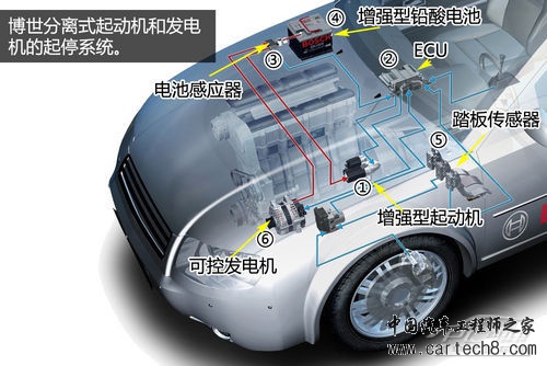 1什么是启停(start-stop)技术回顶部 在节能环保的大趋势下,各汽车厂商也不断地研发新的节能环保技术,以在竞争激烈的市场中分得一杯羹。启停技术(Start-stop System)就是其中一种,致力于最大限度减少发动机怠速时燃油的损耗。启停技术相信大家并不陌生,现在越来越多的车型也都搭载了这种技术。这是近年来才有的新技术吗?实现方式又有什么不同?下面将对启停技术进行一个简单介绍。 ● 什么是启停(Start-stop)技术 汽车行驶在拥挤的城市交通道路中,总免不了停车等红绿灯,而发动机怠速消耗的能源是毫无意义的。启动停车技术就是致力于最大限度减少发动机怠速时燃油的损耗,避免这部分能源的浪费,同时对节省能源与减低排放有着重要的意义。 那么启动停车系统是怎样工作的?遇到红灯或塞车时,驾驶员制动使车辆停下来后,将挡位换入空挡并完全释放离合踏板,这时控制系统会自动将发动机熄火,节省了怠速运转而浪费的燃油;当绿灯放行后,驾驶员踩下离合器,发动机则自动重新启动,挂入挡位后即可前行。 如果是自动挡车型操作更为简单,驾驶员只要施加制动使车辆停止,发动机则自动熄火。在释放制动后,驾驶员加油,发动机将自动启动。这种节能的驾驶方式并没有改变人们日常的驾驶习惯,没有带给车主任何使用上的麻烦,却带来了显著的节油减排的效果。 2启停(start-stop)技术的发展历程回顶部 ● Start-stop技术发展历程 早在1970年,丰田公司已经涉足启停技术。当时尝试在丰田皇冠车上安装一种电子装置,可在汽车静止1.5秒后关闭发动机。试验结果发现在东京市繁忙的交通中,运用这种新技术可使节油率提升10%。 1980年这种技术开始装备于量产车型上销售,菲亚特汽车的Regata与大众汽车公司的第二代Polo皆装备了这种技术。 到1994年大三代大众Golf、Lupo(3L车型),以及1999年奥迪A2(3L车型)都装备有启停技术,不过这些车型因售价高昂而销售不理想。 在日本除了丰田汽车外,马自达汽车也开发出i-Stop系统,在静止怠速的状态下重新启动时会决定首先运作的汽缸,该汽缸的活塞会停在适当位置且汽缸内完成扫气行程。等系统判断将重新启动时,就喷射燃料快速点火燃烧,同时驱动启动马达。启动过程耗时约0.35秒,而且相当平顺。 此外,本田公司在1999年本土市场销售的第一代insight车型就已装备这种技术。2006年开始,思域混合动力车型也运用了启停技术。本田公司运用此技术已超过十年。 2006年法国PSA集团的雪铁龙公司开发名为“start-stop”的怠速熄火系统,搭载于雪铁龙C2和雪铁龙C3上。这套系统结合了该公司研发的sensodrive自动变速箱与电子控制的ISG可逆发电机(ISG集成了启动马达与发电机,是由法雷奥与日本电装公司共同研发而成)。 这套系统也搭载于2011年小改款的标志3008 e-HDi车型上,配合1.6L柴油发动机以及制动能量回收系统,可节省燃油损耗达15%的效果。 在2008年末,菲亚特公司引用了博世公司生产的启停系统,搭载在菲亚特500车型上。阿尔法罗密欧在同年推出MiTo车型也搭载了相同的系统。2009年Volvo也在DRIVe车型上运用启停技术。 德国宝马公司将启停技术应用旗下车型多年,包括2008年后的mini系列车型。BMW一直致力于减少发动机动力的损耗,他们采用博世公司的加强型启动马达,在频繁关闭、启动的环境下比一般启动马达承受更多的启动次数。 3启停(start-stop)技术的三种方式回顶部 ● Stop-Start系统的三种方式 Stop-Start系统作为混合动力车的入门技术(微混合动力),由于成本低,节能减排效果显著,其应用前景广阔。目前,Stop-Start系统主要有三种形式: 分离式起动机/发电机启停系统 采用分离式起动机和发电机的起停系统很常见。这种系统的起动机和发电机是独立设计的,发动机启动所需的功率是由起动机提供,而发电机则为起动机提供电能。 博世是这种启停系统的主流供应商。这套系统包括高增强型起动机、增强型电池(一般采用AGM电池)、可控发电机、集成起动/停止协调程序的发动机ECU,传感器等。 博世的起动电机能快速、安静地自动恢复发动机运转,可降低起动时油耗。这种启停系统系统零件少,安装方便,可应用于各种不同混合动力概念(皮带驱动、直齿驱动和电力轴驱动)。而且系统的部件与传统部件尺寸保持一致,因此可直接配备至各种车辆上。 目前全球已量产装有博世Stop-Start系统的车型已非常多,包括有宝马1、3、5系、X3,大众帕萨特、高尔夫,奔驰A、B、C、E系列(部分),奥迪A6、A8,雷诺Megane,欧宝Corsa、Astra等等。 2009年开始,我国一些汽车厂商也与博世合作匹配Stop-Start系统,2010年上半年上市的长安CX30就匹配该系统。长城、吉利、上汽、奇瑞等自主品牌也相继推出匹配车型。 集成起动机/发电机启停系统 集成起动机/发电机是一个通过永磁体内转子和单齿定子来激励的同步电机,能将驱动单元集成到混合动力传动系统中。 法雷奥于研发成i-Start系统(i-Stop-Start System),它首先应用于PSA(标致-雪铁龙集团)的e-HDi车型上。i-Start系统的电控装置集成在发电机内部,在遇红灯停车时发动机停转,只要一挂档或松开制动踏板汽车会立即自动启动发动机。 法雷奥将为10多个汽车制造商的50款车型配备i-Start系统。到2013年,将有100万辆PSA车型装备此系统。法国PSA集团、奔驰及Smart是法雷奥Stop-Start系统的主要客户。 马自达SISS智能启停系统 前面介绍的两种启