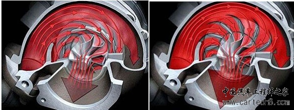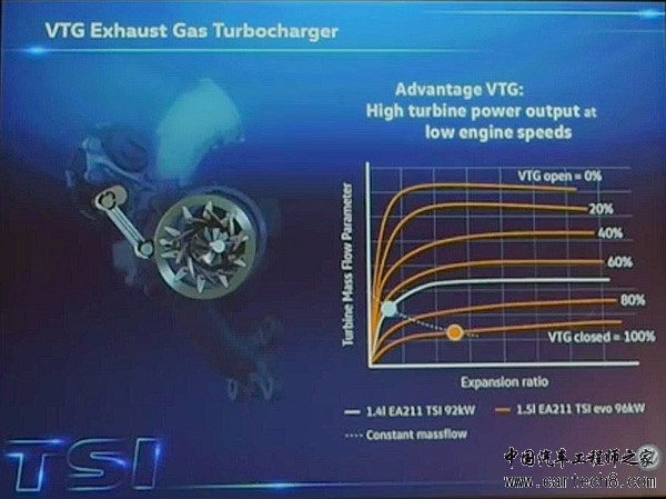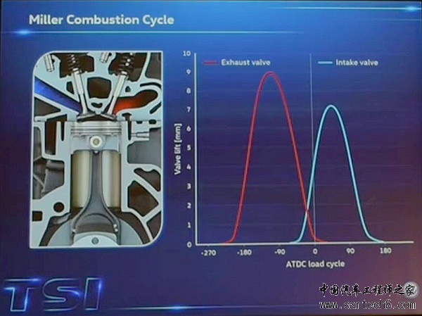 大众将用新的1.5TSI取代现有的1.4TSI已并非秘密。作为大众的新一代机型,而且属于模块化理念下的产物,这款发动机却没能在数据上给我们带来任何惊喜——低功率版131马力,高功率版150马力,与当下EA211的1.4TSI低功率版(230TSI)和高功率版(280TSI)几乎一样,并且已公布的低功率版200牛·米的扭矩比1.4TSI还低了25牛·米。 排量更大、款式更新但性能更弱,这似乎不合常理。然而一直自诩技术控的大众当然不会就此让人失望,它在这款新机型上的确引入了一个新思路——用VGT和米勒循环进行组合。VGT、米勒,什么鬼,它们之间又能擦出怎样的火花呢? VGT并非新发明,但在同类机型里的确是第一次 特别关注涡轮增压技术发展的人应该都知道VGT,它是Variable geometry turbocharger的缩写,直译过来就是可变截面涡轮增压。这种技术在柴油发动机里并不少见,不过在汽油机里,之前只有保时捷在应用。保时捷的独门绝技?如此“高大上”的东西用在1.5TSI上,大众果然够“偏执”。那么现在问题来了:这东西要这么牛的话,这款1.5TSI怎么升功率还不如1.4TSI呢? VGT的本质是用以缓解涡轮迟滞的。我们知道,涡轮迟滞一直存在,并且在相当长的时间内曾经是阻碍涡轮增压发动机普及最主要的原因。当下的普及型涡轮增压发动机之所以迟滞小,一个重要的解决方案就是采用了小惯量涡轮。这种做法固然有利于缓解迟滞,但同时也不利于功率的提升。换句话说,时至今日,涡轮增压发动机的迟滞和功率之间仍然存在矛盾。VGT其实就是用来解决这个矛盾的。 VGT由于有了可变截面的机构,在低速时可以通过较小的截面来提升排气流速,从而达到缓解迟滞的目的。如此,较大尺寸的增压器就可以被应用。然后在高速时,采用较大的截面,从而获得大功率。保时捷之所以如此,目的就是为了达到它的高性能,又不至于低速时迟滞得厉害。 貌似很有道理,但仍然未能解答问题:既然现有的涡轮增压技术已经可以缓解迟滞,那么采用VGT的目的就是在保证迟滞增加的情况下获得更大的功率。那这个1.5TSI这么小的功率是闹哪样? 这个问题咱们暂时先放一下,先来看看这台发动机的另一个重要技术点:米勒循环。 如何在常规动力上利用米勒循环的高效,这对于应对“2020”是个重要课题 米勒循环同样不新鲜,它与我们更常听说的阿特金森循环其实是一回事。从原理来说,这种循环相比奥托循环的一个最重要的区别在于膨胀比大于压缩比。常规的奥托循环,做功行程活塞到达下止点时,燃烧后的混合气“劲儿还没使完”就进入排气行程了,能量就此白白浪费。米勒循环由于拥有更大膨胀比,意味着此时活塞可以继续向下运行,从而更充分地利用做功行程所产生的能量,燃效自然也就更高。 尽管如此,米勒循环却一直没法普及,主要原因有二。一个是升功率小,另一个是低速特性差。在现有的发动机结构基础上,要想达到米勒循环,扩大膨胀比是没戏的,只能是减少“实际压缩比”(以达到膨胀比大于压缩比的目的)。何谓实际压缩比?其实就是在压缩行程开始后进气门仍然保持开启状态,将已经进入汽缸的空气再排出去一部分,然后再关闭进气门。如此,最终实际参与压缩的混合气体积是要比气缸容量小的,由此形成的“实际压缩比”自然也要小于“设计压缩比”。具体到大众的这台1.5TSI,它的压缩比高达12.5,这对于米勒循环而言其实只相当于膨胀比,而实际的压缩比则要小于这个数值(或许就与目前1.4TSI的10差不多)。 不光是压缩比,再仔细想想会发现,米勒循环下发动机的实际排量也变小了,直接导致的结果就是功率变小。这还不是最主要的。更为主要的,是米勒循环的低速特性不好,会影响到日常驾驶体验。因此过去这种结构只会在混动动力总成上出现(通过电机来弥补其缺陷)。 然而米勒循环的高效还是很诱人的。尤其是面对欧洲2020排放法规的严苛要求,发动机设计师几乎要极尽可能利用所有能提升效率的东西。如今有个现成的米勒循环摆在面前不用,实在是可惜。于是,大量工程师在这方面开动脑筋。 例如丰田已经想到了VVT-iw,它可以在某种工况下切换成阿特金森/米勒循环。然而这仍不够彻底,因为大多数情况下这款发动机还是采用的奥托循环,这对于能效的提升仍然有限。那么,如何才能让真正让一台常规动力车型充分(任何工况下均可)获得米勒循环的高效呢?大众给出的方案就是VGT。 车云小结:采用VGT是为了配合米勒循环,核心诉求还是为了燃效 上面如此大篇幅的单独说两个技术点,目的就是为了到这里的汇总。事实上你或许已经从这字里行间看到了二者结合的基础。没错,VGT的最大魅力在于缓解迟滞和提升功率,这恰恰是米勒循环的短板。而涡轮增压技术特有的低速峰值扭矩特性,也有利于进一步缓解米勒循环低速特性不好的问题。如此一来,这台采用米勒循环的1.5T发动机没有了低速弱的问题,相反它的峰值扭矩在1300转即可达到(优于1.4TSI的1500转)。至于功率,看了上面的原理我们知道,这台1.5TSI的实际排量其实没有1.5L,那么它的的功率也就变得正常了。 当然,实现这一点并非如此简单,否则早就有人这么弄了。为了将米勒的问题解决,以及让它更好的与VGT融合,大众想了很多的招,例如进气道与燃烧室的结构调整,改善进气导流和缸内滚流等等。这些大家具体细节并非本文重点,感兴趣的可以寻求度娘帮助,车云菌就不赘