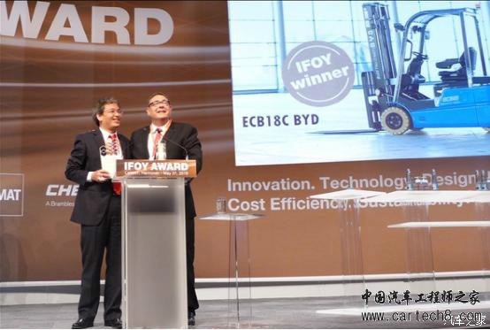 作者:陈希 刚刚获得“中国好技术”认可后不久,5月31日,在德国汉诺威国际物流展上,比亚迪纯电动三支点叉车又以绝对优势获得2016年度国际叉车年度大奖IFOY