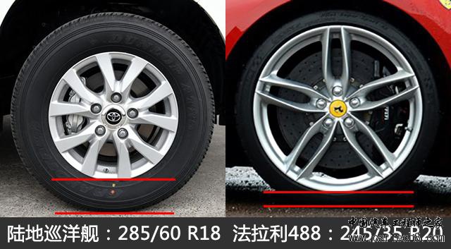 轮胎扁平比,又叫做高宽比,先让我们找找它在轮胎的哪里显示: 图中的“60”就代表了这个轮胎的扁平比,那么扁平比又是怎么来的呢? 现在我们知道扁平比是怎么来的了,那么扁平比的大小对于一辆车来说意味着什么呢?让我们先来看看两个大家都耳熟能详的车: 让我们放大了来看: 不论从视觉效果还是数据对比,我们都很容易的发现陆地巡洋舰所装配的轮胎扁平比数值比法拉利488要大的多,甚至接近于两倍。让我们结合一下俩车的定位和用途就能很清楚的了解扁平比对于汽车行驶品质的影响。 定位于非铺装路面行驶的车辆使用高扁平比的轮胎,轮胎胎壁很长,中间空气层的厚度就会很大,这样以来就会有很强的缓冲能力,就像你穿了一双底子很厚而且弹性很好的鞋子,散步的时候或者踩在坑洼的路面上会很舒服,但一旦让你跑步就很容易崴脚。 低扁平比的轮胎,轮胎胎壁很短,相对来说中间的空气层就很薄,就像你穿了一双鞋底很薄的鞋子,对于路面的任何反馈都很清晰,踩到一个小小的石头你都会有很明显的感觉,显然穿这样的鞋子走路时会很不舒服。但是倘若让你在跑道上奔跑,你的脚可以很好的贴合路面,鞋子就像你脚的一部分,跑起来会很快。 另外要说的是,低扁平比和大内径的轮圈可以换来极强的视觉冲击力,很多改装爱好者都喜欢这样,不过要真的是为了实用,那就要根据自己对车子的需求选择扁平比合适的轮胎。 |