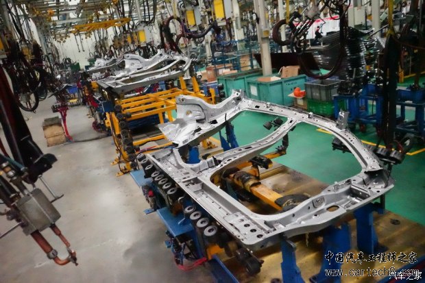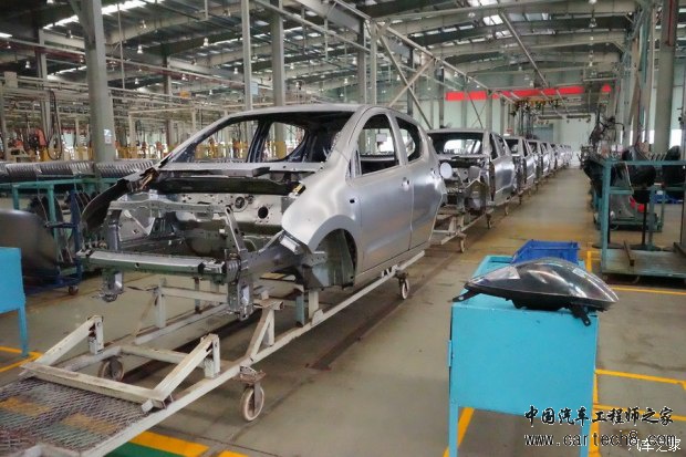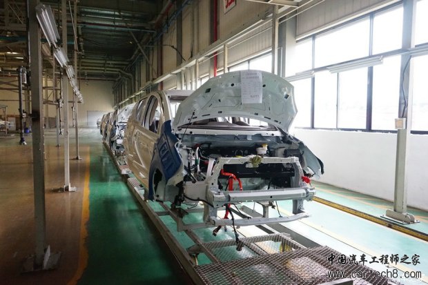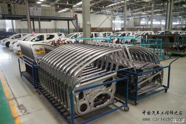 2015年10月,众泰汽车(湖南长沙基地)生产的“云100”电动汽车下线,至今已经销售出近2万台。扣除补贴后5万余元的售价,150公里的续航里程(综合续航里程120公里)以及5人座5门的架构,使得这款只在南方销售的入门级电动汽车具备较强的竞争优势。现在,续航280公里(综合续航里程接近180公里)、具备电池管控(加热)可在北方市场销售的“云100S”电动汽车,以不足6万元(扣除补贴后)售价冲击2016年入门级(A0)中国电动汽车市场。 全系采用“熊猫双色”装饰的“云100S”长宽高为3559x1620x1476mm,轴距2360mm。与“云100”一样,外观都采用“新奥拓”的关键特征。 备注:众泰湖南长沙基地就曾经生产“江南奥拓”汽车,“云100”的原型车为“Z100(传统动力)”,而“Z100”就是“新奥拓”的翻版。 “云100”的内饰格调以浅灰色与深棕色搭配为主。 “云100S”的内饰风格依然以深灰色与浅棕色搭配为主。 “够用”为主的“云100”集成了手动空调和简单的多媒体设备。 “大屏幕”(7寸)的引入,使得“云100S”变得高大上。导航、人机互联等配置,似乎成为以“众泰模式”生产车型,必不可少的“标配”。 位于湖南长沙的众泰基地的总装厂,具备生产C级中高档轿车的能力。设计年产能10万台(双班),可多车型混线柔性生产,“云100S”的总装也是在这里完成。长沙基地总装线的内饰一班(组)采用摩擦链输送、内饰二班(组)窄板链输送、底盘班悬挂式自行小车输送、成车宽板链输送。输送设备的运行节拍可在130秒-300秒内根据实际需求调整。总装厂厂房面积16140平米,总装输送链有效装配工位72个,拥有国内先进的AGV小车、电脑加注机和相关检测设备。 在2015年生产“云100”电动汽车时,合装线还是“Z100”与“云100”混线生产,经过1年后,“云100S”将会采用根据销量进行独立排产。2015年“云100”总销量将近2万台,乐观预计,2016年“云100S”的销量将会轻松突破3万台。 众泰汽车,目前划分为杭州、金华、长沙三个整车基地。其中杭州以生产Z500、Z700乘用车为主;金华基地则以产生“众泰模式”的“T600”为主;长沙基地以生产“Z100”和“云100”系列为主。因为众泰集团为大众、上汽等车厂提供模具和配套供应起家,现在众泰全系车型的模具全部自己独立开发。无论杭州、金华还是长沙基地,都具备完整的冲压、涂装、合装、质检生产流程。 在长沙基地的冲压车间,可以为包括“Z300”、“Z100”和“云100”系列在内的车型提供全部车身钣金件。“云100S”车身架构源于“新奥拓”并与“Z100”的钣金件高度通用,无形中就降低了整车研发、生产和使用的成本。而低廉的使用成本(客户端),再次提升了“云100S”在同级别市场的竞争力。 众泰长沙基地的焊装车间内的车门焊接(外板)焊接工位,主要由安川(Yaskawa)机械臂完成焊接(一个焊接工位可按顺序同时为2-3套车门进行焊接)。 “云100S”的车门一体成型冲压(焊接),较“2段式”工艺在强度上更具优势。 上图是完成了车身侧围、地板、顶盖、前翼子板、前机盖焊接合装的车身结构特写。 白色箭头:前围板(固定内饰隔热地毯、动力舱前围线束)。 红色箭头:B柱内板(B柱为车身侧围焊接件一部分,在售后维修中可以单独更换,但是强度将会降低)。 字母A:车身焊接组件中的前地板(前部)。 字母B:前地板加强筋1(提升前地板纵向强度,在侧向碰撞中,前地板加强筋可以有效吸收冲击力,并降低车身焊接侧面溃缩变形系数。对“云100”系列电动汽车而言,车身焊接在遭受侧面碰撞时尽可能的保持完好的形体,有助于提升电池安全系数)。 字母C:车身焊接组件中的前地板(后部)。通常来说,车身焊接中的前地板,可以由1块、2块(前后)或4块(前、后、左、右)冲压件构成。构成的数量越多就需要更多的焊接工序以及焊点。在遭受激烈碰撞时,焊点越多在一定程度上就意味着变形系数更大。当然,钢板材质与焊接技术的提升,已经可以将焊接材料数量与安全系数脱离。 字母D:前地板加强筋2。 字母E:后地板加强筋。 从“云100S”车身焊接组件看,做工中规中矩,顶盖、侧围、地板等中大型焊接分系统,均由机械臂完成自动焊接。焊点清晰、且均匀分布,具备较高的被动安全性。 众泰长沙基地的车身焊接线与合装线一墙之隔,车身焊接完成后转入涂装线,就可进入合装线。从焊接线转入涂装线以及合装线之前,都会有质检人员进行检查。不合格的部件或调整或返工或废弃。 如上图所示,“云100S”的车身焊接进入涂装车间之前,将会对前机盖、5车门、风挡玻璃、等部位进行安装灯具、开关车门、试装玻璃等检验。 上图是“云100S”的车门合页比对“诺基亚9300”特写。一次性冲压的车门合页,不仅要具备足够的横向支撑力度(车门横向开关),具有强制要求在碰撞时不变形能力。 需要注意的是:在4S店更多的时候并不会保证车门合页也会使用原厂配件。成本几元至十几元的“副厂件”,更是充斥着社会修理厂、汽配城。一旦使用不合格的车门合页,极有可能出现碰撞时车门不会第一时间开启,影响车内人员安全逃生。 完整的车身焊接经过涂装后(中涂底漆、电泳等工序),被送入合装线并完成动力、悬架、内饰以及电器分系统的安装和调试。 前文提到过,“云100S”的5车门都是一体冲压成型,而不是车窗部分与车门下部焊接而成。 上图是“云100S”车身焊接后部特写。 “V型”