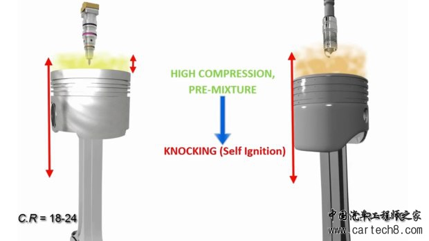 前不久,一位诺粉在好车库淘得了国内罕见的柴油版奔驰GL350! 相比于汽油发动机,柴油机的乘用车在国内的市场真是小的可怜,许多人对于柴油机的了解更是少之又少。 那么柴油机跟汽油机到底有什么区别呢?如果把汽油加到柴油机里会怎么样呢?反之又会怎样呢?今天丰丰就给大家科普一下! 【柴油机没有火花塞?】 是的,简单的说柴油机采用“压燃”的方式,所以没有火花塞。 要想了解汽油机和柴油机的区别,首先要知道汽油和柴油的区别。汽油的分子量比较小,容易挥发;柴油的分子量更大,挥发性远不如汽油好。 在发动机内燃烧时,挥发性更好的汽油可以和空气高效混合,然后由火花塞发出的一丢丢火花就可以让混合气产生平顺的燃烧,从而推动活塞。 柴油的挥发性不好,无法和空气顺利混合,也就无法用火花塞点燃。但是当雾化的柴油邂逅高温高压的空气时,它们便会燃起“爱情的火焰”!这就是所谓的“压燃”。 这就意味着汽油机(非缸内直喷)吸入、压缩的是预先混合好的燃油和空气,而柴油机吸入、压缩的只是空气,只有在燃烧阶燃料才与空气混合,所以柴油机是没有火花塞的,柴油机的喷油嘴代替了汽油机火花塞的“位置”。 【柴油机更省油?】 因为吸入、压缩的只是空气,柴油机根本不需要担心压缩冲程时的爆震问题,可以把活塞的行程设计的很长,从而达到很高的压缩比。 但是汽油机(非缸内直喷)就不行了,吸入、压缩的是混合气,如果活塞行程太长,压缩比太高发动机就会出现爆震的问题,所以汽油机没有柴油机的压缩比高。 但也因为高压油泵和喷油嘴要在高压下喷射柴油,所以柴油的润滑性就很重要,不然高压油泵和喷油嘴就会被磨损。国五柴油的含硫量降低许多,但也导致燃油润滑性降低,这会让喷油嘴老化加速。 压缩比越高,冲程效率就越高,所以柴油机更省油。GL350这种大型SUV的百公里油耗仅有9升左右!加满一箱油几乎可以跑1000公里!是不是很省油呢? 【柴油机噪音大?】 汽油和空气的混合气在气缸内燃烧的很平顺,能量传递很好。 柴油机的燃烧是一个不可控的过程,燃烧可能发生在做功冲程的任意阶段,所以柴油机的震动和噪音都要比汽油机大。 因此,柴油发动机需要更加坚固的结构设计,这也是轻量化车型首选汽油发动机的原因。 【柴油机转速不高?】 是的,看看这台奔驰GL350的转速表,才4000转出头就已经到红线了。 因为柴油机需要更加坚固的设计,所以它自身的质量也会增加,活塞、连杆、曲轴等部件都会变得更笨重,看看这“粗大”的活塞就知道了吧。 质量越大,惯性力就越大,再加上柴油机的活塞行程较长,如果转速很高,发动机就要承受极大的惯性力,这可能导致发动机的损坏。 顺便说一句,塞上面有个碗装凹槽,这是为了在压缩冲程中让空气产生高速旋转,这样可以让燃料和空气高效混合。 F1引擎的转速极高,正是因为发动机内的变态轻量化设计!F1活塞和普通活塞的对比一下就一目了然了。 【柴油机“马力”大?】 其实柴油机的“马力(功率)”还真不大!功率是转速和扭矩的函数,转速不高限制了柴油机的输出功率,所以说柴油机的“马力(功率)”不大。 但是柴油机的活塞行程长,而且柴油机往往都是“增压+直喷”的配置,燃烧效率更高,所以柴油机的扭矩大。 【把柴油加到汽油机里会怎样?】 柴油加到汽油机里的话发动机是无法启动的,因为柴油不能和空气顺利混合,火花塞也就无法点燃混合气。 【把汽油加到柴油机里会怎样?】 这样的话,你可要小心了! 把汽油加到柴油机里,等于把一种高挥发性燃料喷到了高压缩比、高温的燃烧室里,这会导致发动机严重的爆震,从而损伤发动机。 【往柴油机里加“尿”是什么鬼?】 柴油机里加的不是“尿”……是“尿素”,故名思议,尿中含有它所以叫“尿素”。尿素学名叫碳酰胺,又称脲。 在柴油车里加入尿素可以减少尾气中的氮氧化合物,从而提升尾气排放等级。 这台加规奔驰GL350有尿素限制系统,在尿素不足的情况下车子会自动限制启动次数,如果超出启动次数,发动机电脑会完全锁止车辆,这样的话需要把车拖到4S店去解锁,解锁可是要好几千块大洋呢! 现在你是不是对于柴油车有了更深入的了解了呢? |