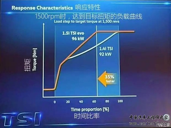 在今年的维也纳车展上,大众首次发布EA211 1.5L TSI Eov 直列四缸涡轮增压发动机(大众1.5TSI发动机)。 目前大众家用汽车主要搭载EA211和EA888这两款发动机。 EA211发动机主要搭载2个排量,分别是1.6L和1.4TSI。涡轮增压版本命名有了变化,其中1.4TSI车子,车位会标注230TSI或者280TSI,一个低功一个高功。230和280两个数值是1.4TSI调教出来的峰值扭矩值。 同样第三代EA888发动机搭载两个排量,分别是1.8TSI和2.0TSI 。1.8TSI有高功低功2个,分别330TSI和300TSI。2.0TSI也分高功低功380TSI和330TSI两个。 在这个小排量涡轮增压的时代,为什么大众在拥有EA211系列1.4TSI发动机之后,却要研发一款EA211系列1.5TSI发动机,奇怪的是排量上涨了0.1L,峰值扭矩却下降了25牛.米,这是技术的退步么? 为什么要研发EA211系列1.5TSI发动机?它黑科技又在哪里呢?我们今天逐一来介绍一下。当然老生常谈的涡轮增压、缸内直喷就不了了,我们来看看全新的技术。 可变几何截面涡轮 大家都知道,涡轮增压最致命的缺点是涡轮的滞后性,可变涡轮截面的出现,非常有效的缓解了涡轮迟滞。简单来讲,低转速小涡轮,高转速大涡轮,使发动机进气工作过程更加顺畅。 为降低残留在气缸中废气比例,大众1.5TSI发动机通过动态控制涡轮增压器的废气导流叶片,在高负载工况下保持进排气压差为正(进气压力>排气压力),从而降低残留废气比例,使12.5:1高压缩比在1.5TSI发动机上成为可能。 米勒循环 说到米勒循环,我们先来讲讲其前身奥托循环吧,我们先来看一张图片,然后再继续讲解。 大家都知道发动机做功分为进气、压缩、膨胀、排气,4个过程。我们普通发动机做功,全过程的压缩比和膨胀比是相同的,都是属于上图所示奥托循环。 但是汽车工程师研究发现,在中负载区,发动机并不需要太多燃料,即可完成任务。所以在发动机在中低段做功中,使用米勒循环;在高段做功中,使用奥托循环。这种“人性化”的设计,早在很多日本车上已有使用,降低的燃油消耗率,1.4TSI的发动机油耗比1.5TSI低1L。 米勒循环是怎么回事呢?鑫哥简单给大家讲一下。一般活塞达到最低点,发动机完成进气过程,进气支管关闭。而米勒循环会延长关闭,将原先混合好的燃气,压出去一部分,当然不是压到空气中去,而是将其收集起来了,等着下次循环使用。说的简单点,就是少给牛吃草,多让牛干活,这些汽车工程师也是“压榨”的够够的了。 油压式进气门正时调节 要实现米勒循环和奥托循环的切换,那么气门开闭的调节是关键技术。例如马自达创驰蓝天技术进气正时调节器是一个电机,电机不受液压油的影响,调节速度更快。然后大众1.5TSI发动机用了油压式气门正时调节,但是通过优化后,可以在0.25秒之内完成调节。 更高燃油喷射压力 燃油喷射系统的喷油压力从EA211 1.4TSI的200bar提升到350bar,提升喷射压力能够增强燃油雾化效果,提高燃效,降低颗粒物的排放。 等离子体缸壁减摩涂层 提到降低活塞环和气缸壁之间的摩擦阻力,业内较为常见的是采用低张力活塞环、在气缸壁加工出能够改善润滑条件的平顶网纹等措施。而1.5TSI采用等离子喷涂,形成一层铁的氧化物涂层(100-180微米),固体润滑剂可以降低活塞环和缸壁之间的摩擦。 电控冷却模块&变量机油泵 EA211 1.5TSI 将原先的2块石蜡节温器换成了电控冷却模块,调节速度更快,效率更高,燃油经济性更好! EA211 1.5TSI 配备了电控变排量机油泵,根据发动机转速,提供压力的机油润滑,达到最佳的润滑效果。 可变气缸技术 EA211 1.5TSI发动机的表现如何! 加上这些黑科技之后,EA211 1.5TSI 虽然排量增加了0.1L,峰值扭矩却降低了25牛米。但是热效率达到37%,实际油耗比1.4TSI更低。涡轮迟滞得到很好缓解,加速更加线性。1300转就进入最大扭矩区间,发动机响应更加迅速!让我们拭目以待吧。 |