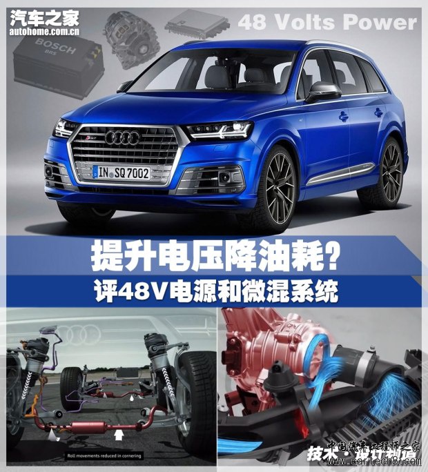1 48V电源系统与微混系统汽车 [汽车之家 新鲜技术解读] 汽车电器系统越来越复杂使得现在汽车上的电源系统开始有点不堪重负了。在轿车上已经沿用了超过60年的12V电源系统亟待升级以满足用电器的需求。虽然现在的混合动力汽车和纯电动汽车上的高压(超过100V)动力电池能够满足日益增长的车载用电器对电源功率的要求,但其制造成本还是偏高。近年来,欧洲厂商开始大力推广48V电源系统,这种更高压的电源系统除了满足用电器需求外,也为微混系统汽车诞生提供了一个合适的平台。汽车上的48V电源系统将为我们带来什么呢?下面我们一起来看看。